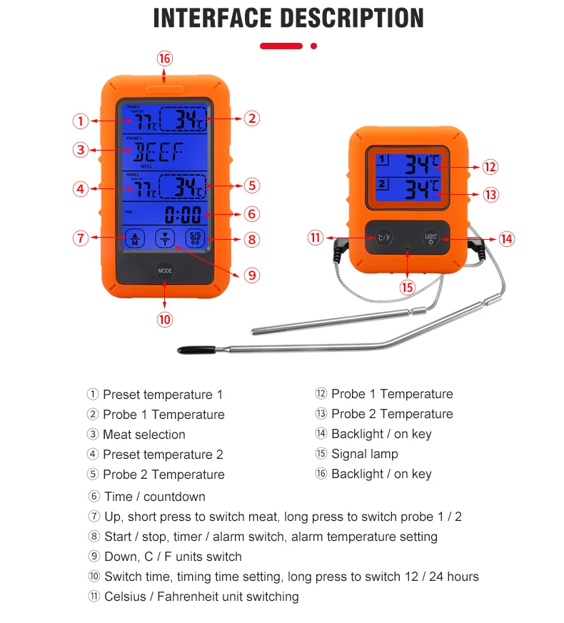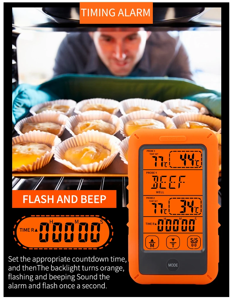 Отзывы о Беспроводной цифровой пищевой термометр с двойным зондом для кухни барбекю