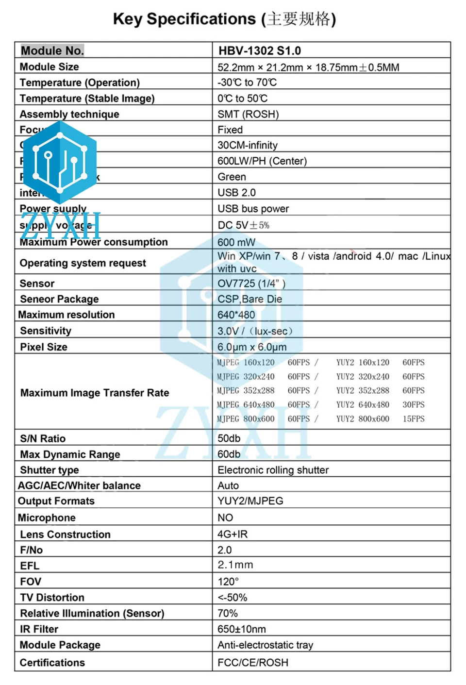 2. Фоточувствительный чип: OV7725(1/4 '') CMOS