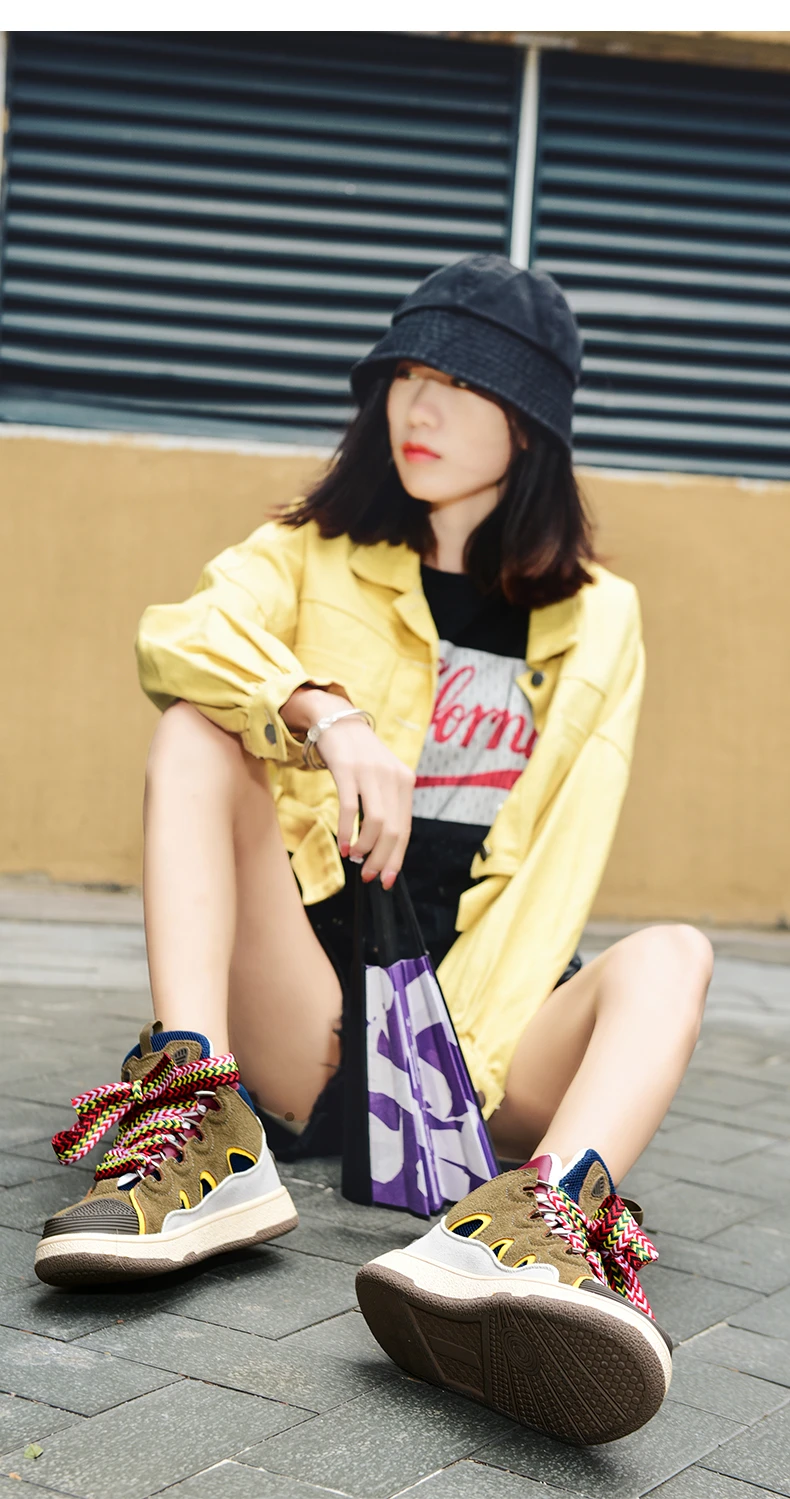 Отзывы о Модные желтые кроссовки Superstar женские высокие кружевная обувь на платформе для