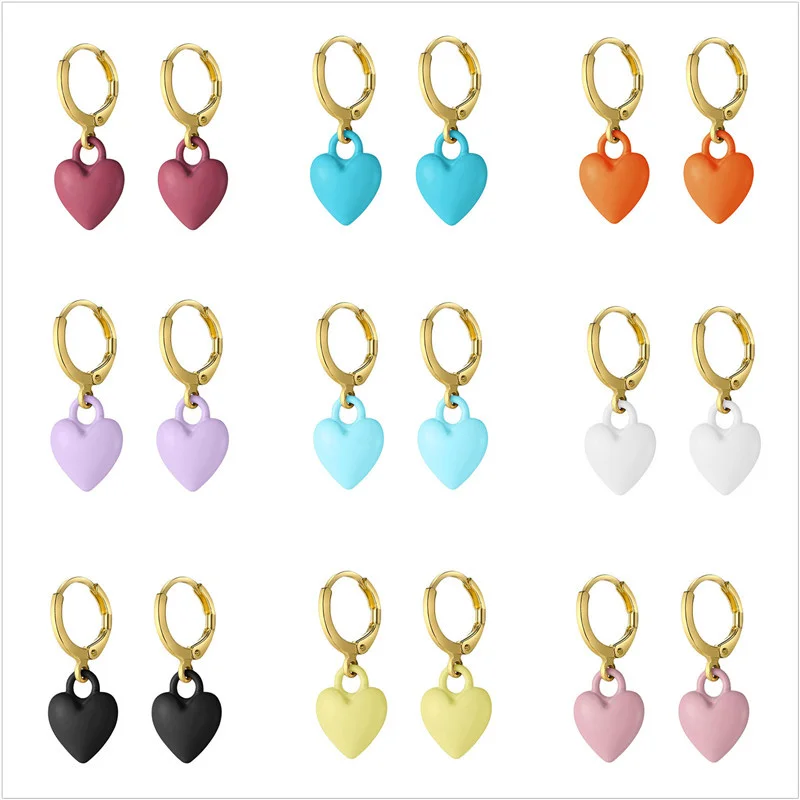 Отзывы о Эмалевые серьги-подвески в форме сердца гламур чистый цвет маленькие милые