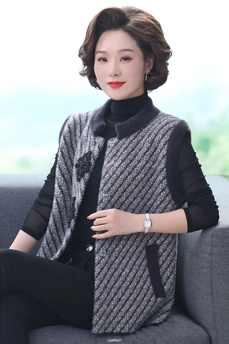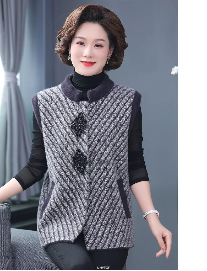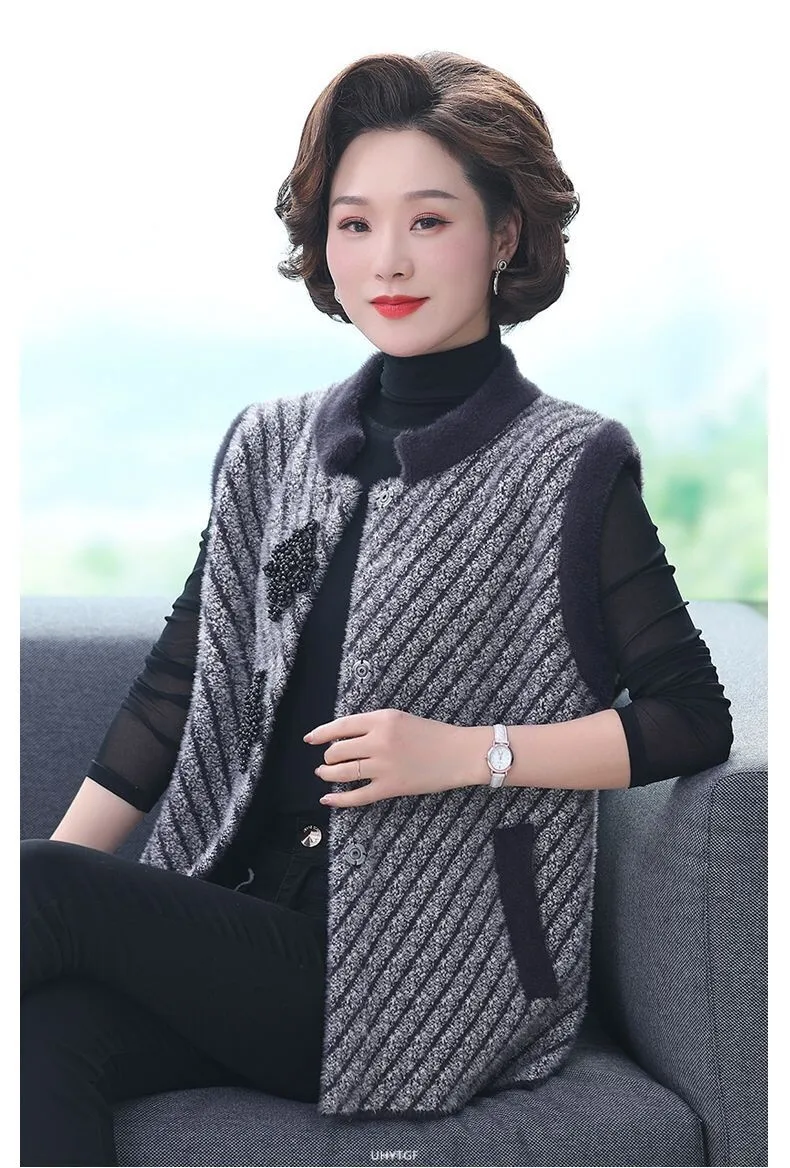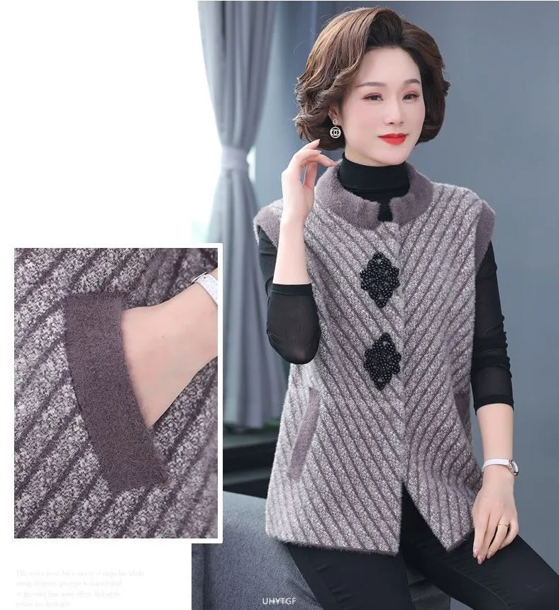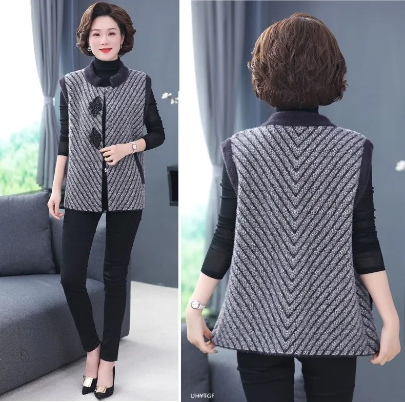 UHYTGF Женская куртка без рукавов среднего возраста для пожилых мам весна осень жилет пальто норковый флис размера плюс жилет верхняя одежда 2314