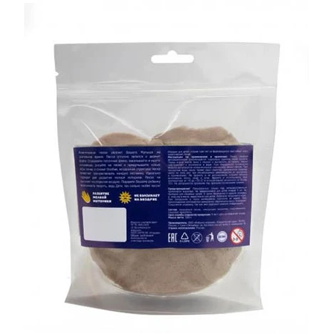 Не оставляет пятен и не прилипает к рукам. Масса песка 300 г. Состав кварцевый песок, связующее вещество, пластификатор, пищевой краситель. Соответствуют требованиям безопасности и стандартам качества продукции. Для детей от 3-х лет.