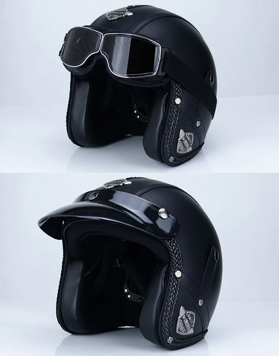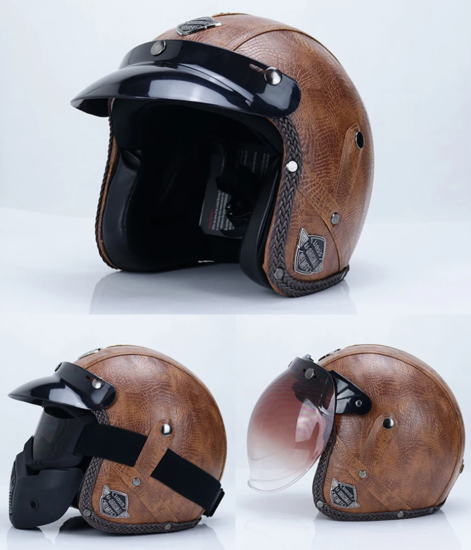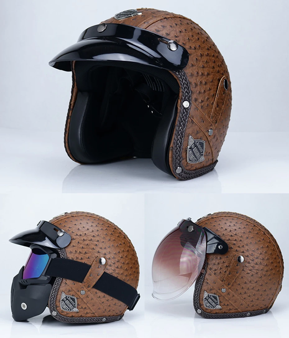 Винтажный мотоциклетный шлем для мужчин и женщин, классический ретро стиль, искусственная кожа, с открытым лицом, дизайн руля, теплый легкий, в горошек, сертифицированный мотоцикл