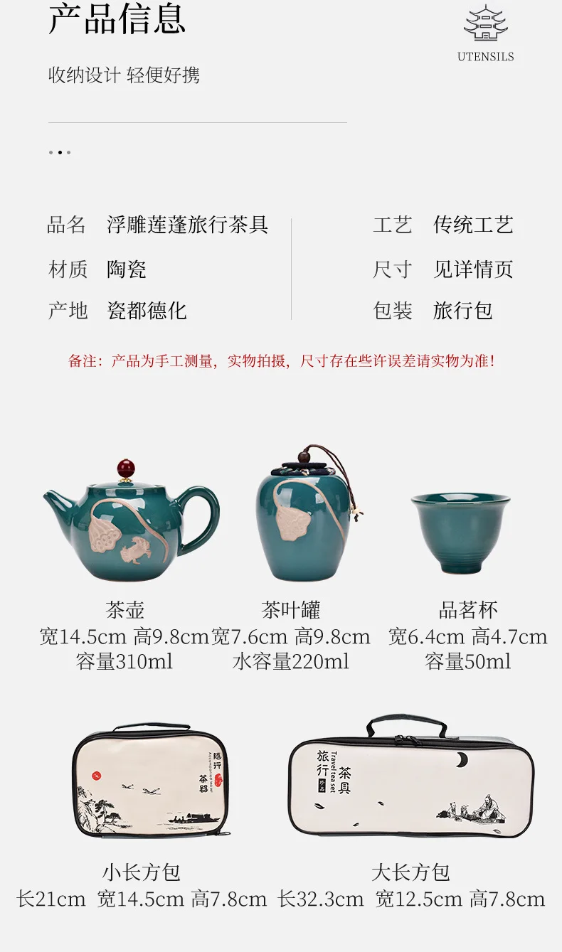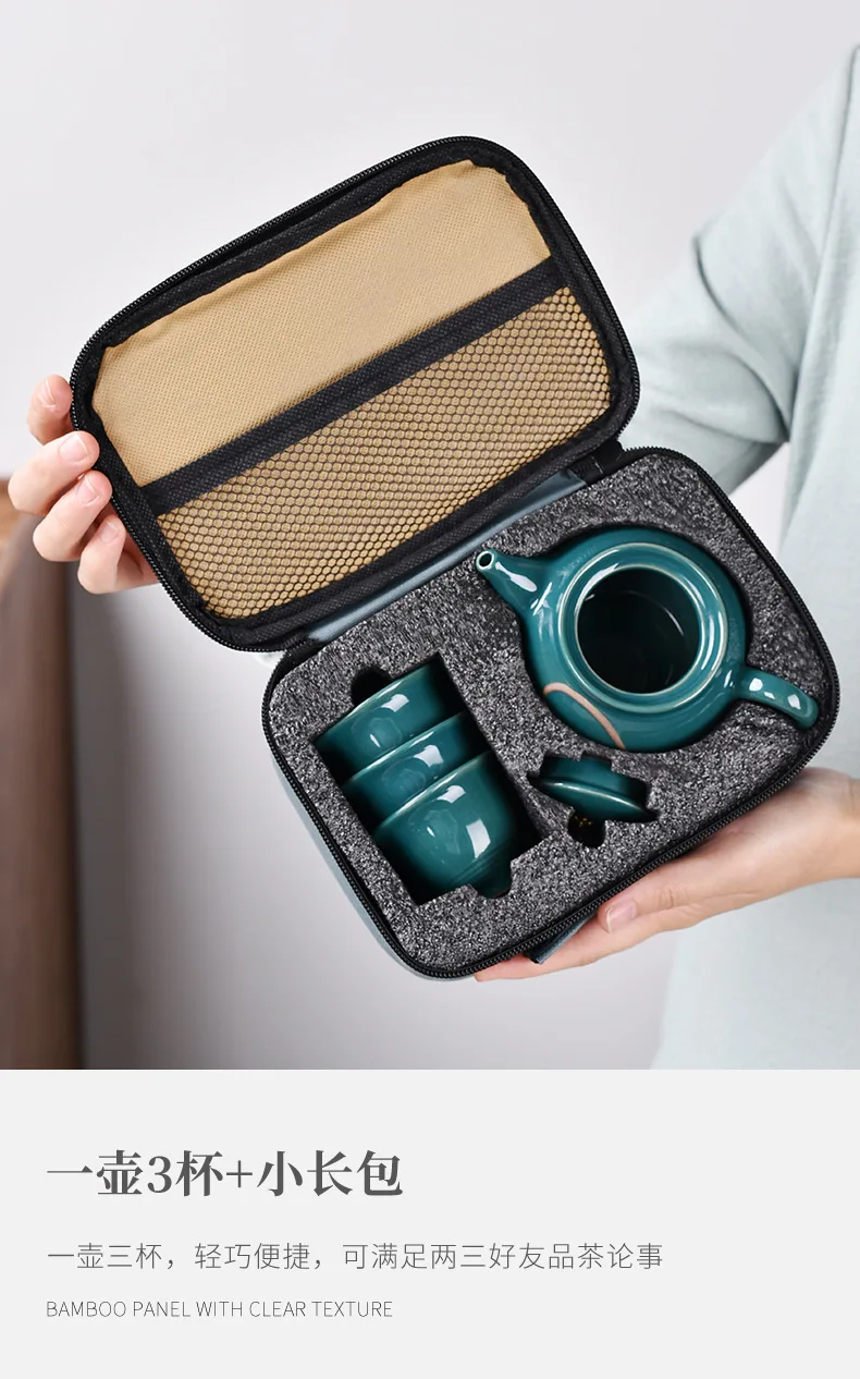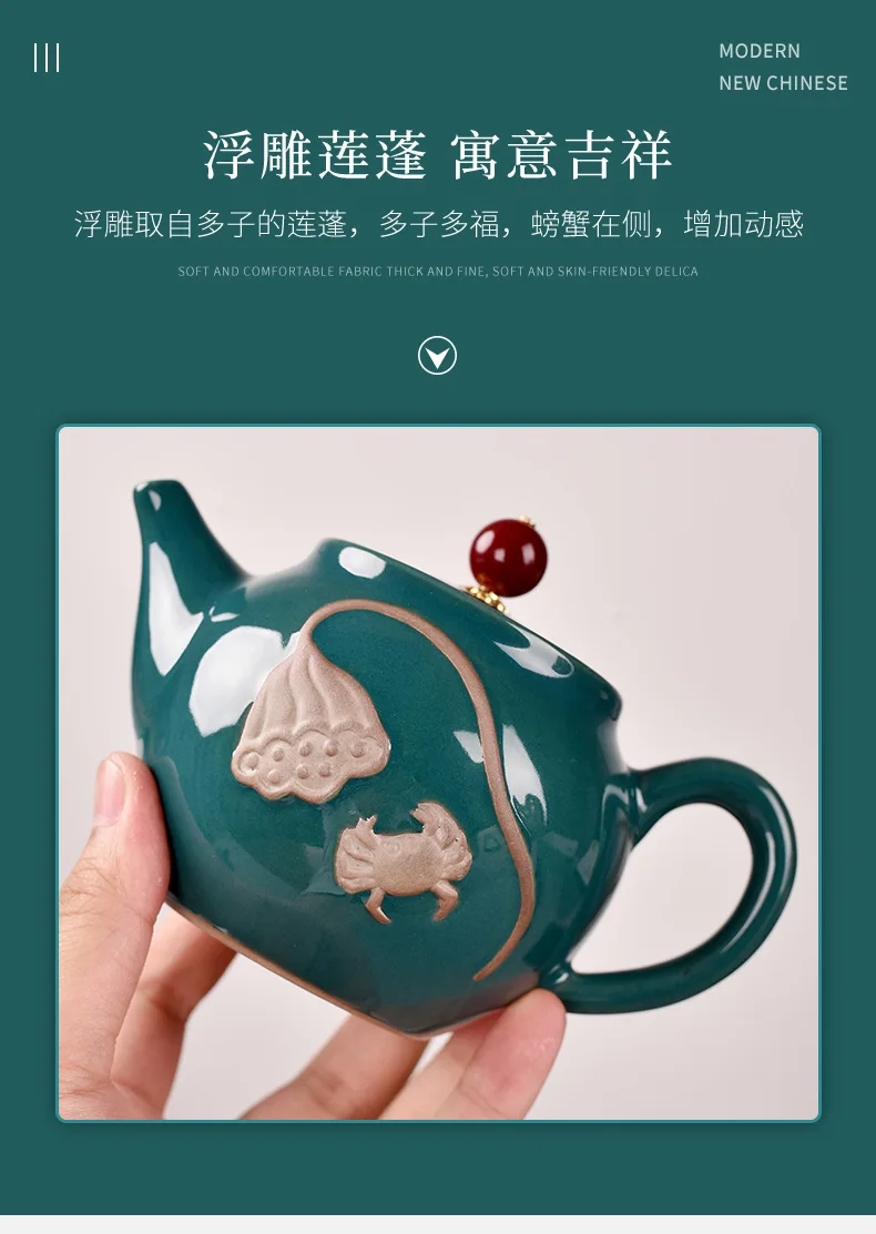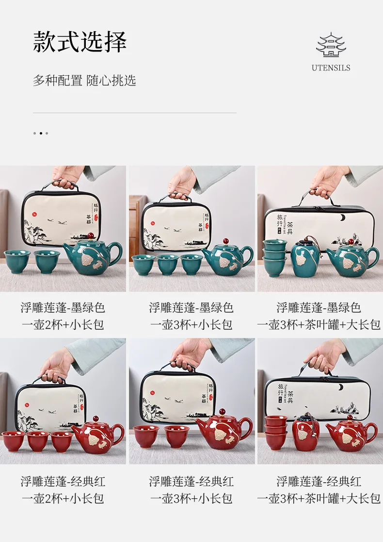 Отзывы о Зеленая чайная посуда в стиле ретро яркий рельефный дорожный чайный набор