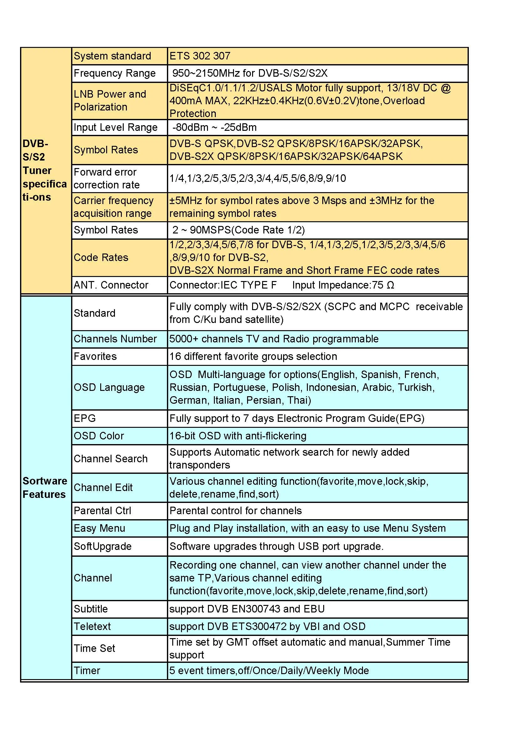 3. Поддержка Unicable, DiSEqC1.0/1,1/1,2/USALS мотор полностью поддерживает;