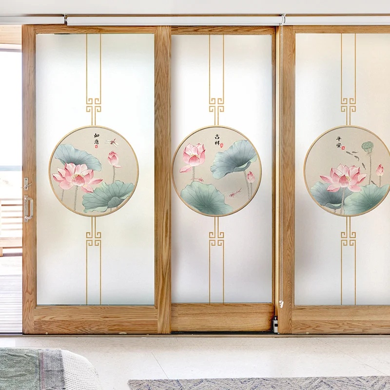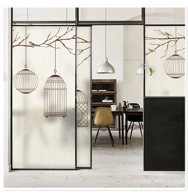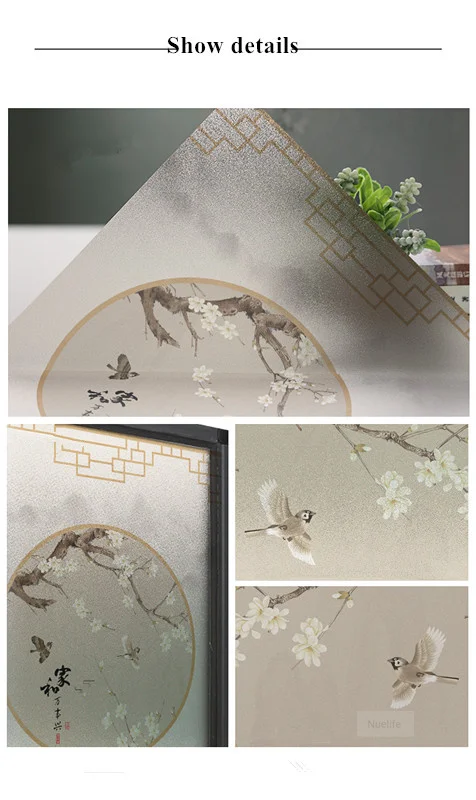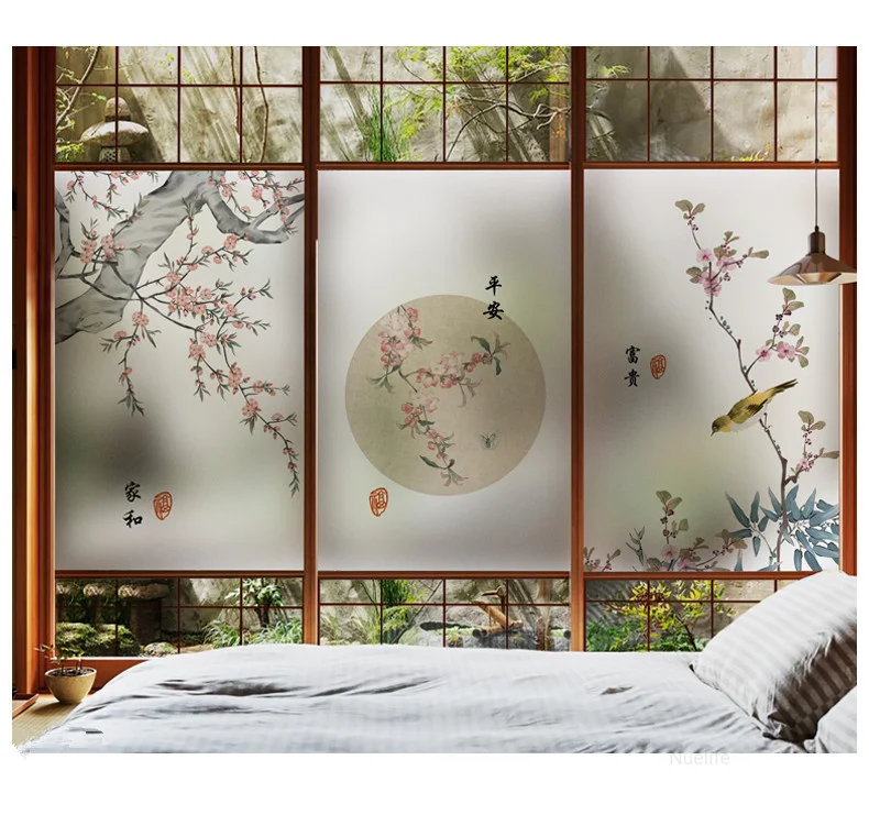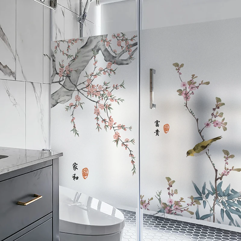 Отзывы о Стеклянная наклейка на окно в ванную комнату с растениями цветами и птицами -