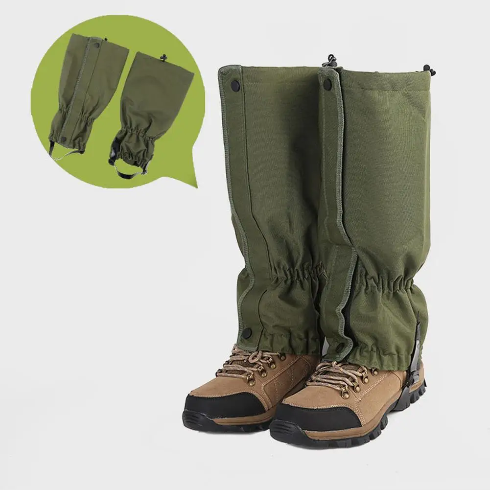 Гетры изготовлены из водонепроницаемого Оксфорда 600D и полиэфирного волокна с отличной водонепроницаемостью, разрывом и устойчивостью к проколу, долговечностью и воздухопроницаемостью.