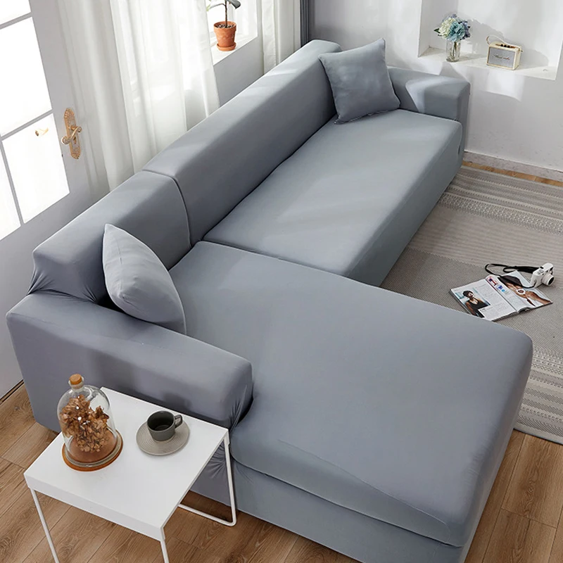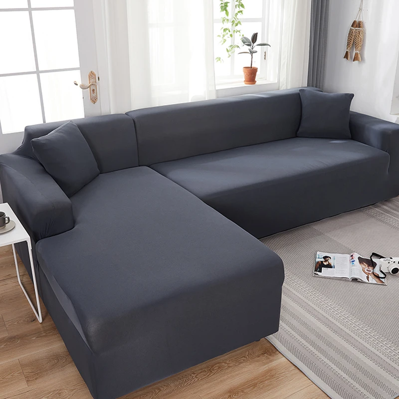 Отзывы о Однотонный чехол для дивана в гостиную эластичный углового L-образной формы на