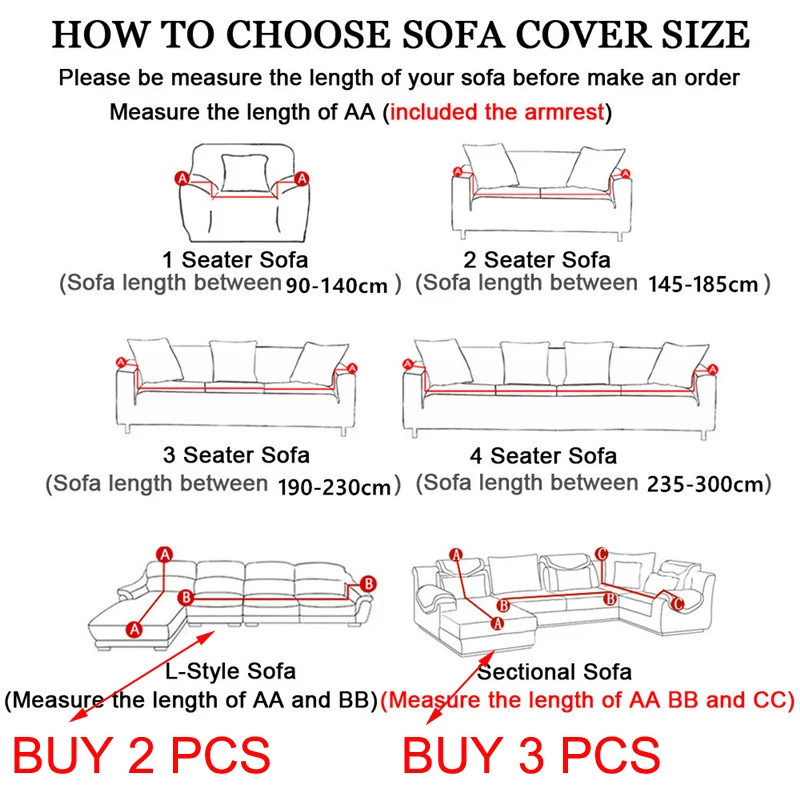 P.S: для углового покрытия для дивана «L Shape» или секционного покрытия для дивана, вы должны купить 2/3 шт., прилагается, пожалуйста, проверьте картинку «Как выбрать чехол для дивана» для вашей справки.