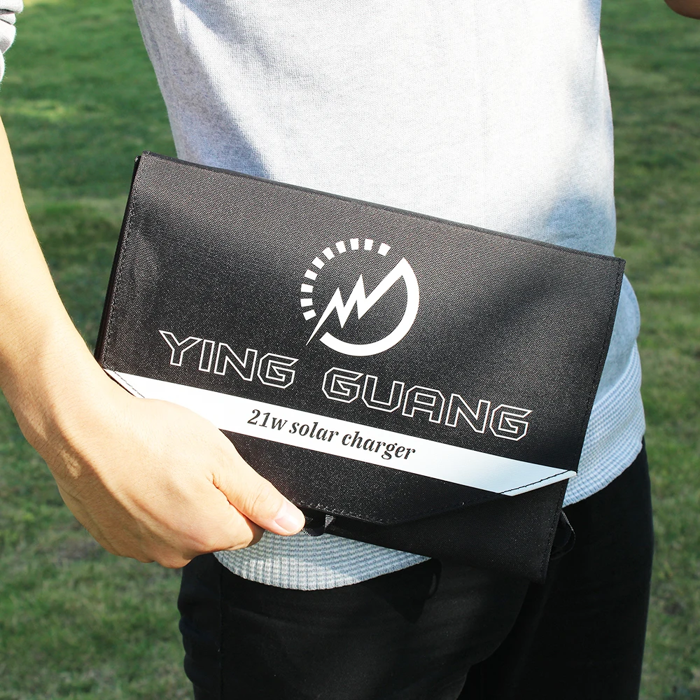 Используя мощность трех высокоэффективных солнечных панелей, наше солнечное зарядное устройство 21W-ваш новый лучший друг, когда вы находитесь далеко от дома. Путешествуйте с легкостью, используя петли банджи зарядного устройства, которые прикрепляются к рюкзаку. Разверните устройство и выставьте 21 ватт складной солнечной панели, два usb-порта для зарядки позволяют одновременно заряжать до двух устройств при максимальном выходном токе 3 А в общей сложности. Независимо от того, куда вы идете, наше 21w складное зарядное устройство панели солнечных батарей будет готово для вас.