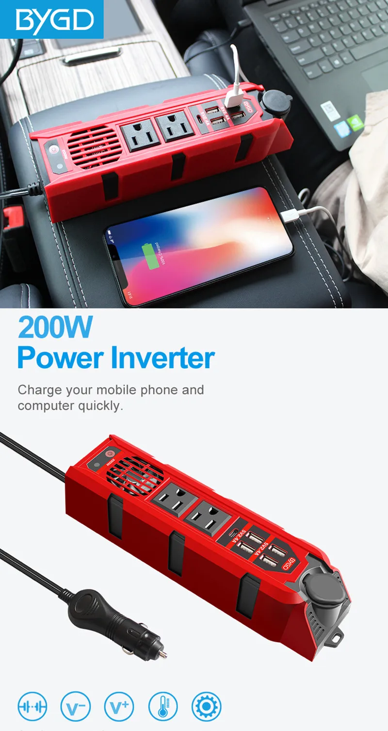 Отзывы о Автомобильный преобразователь напряжения BYGD 200 Вт постоянного тока в переменный
