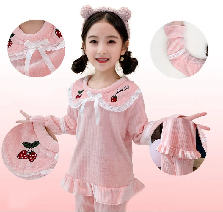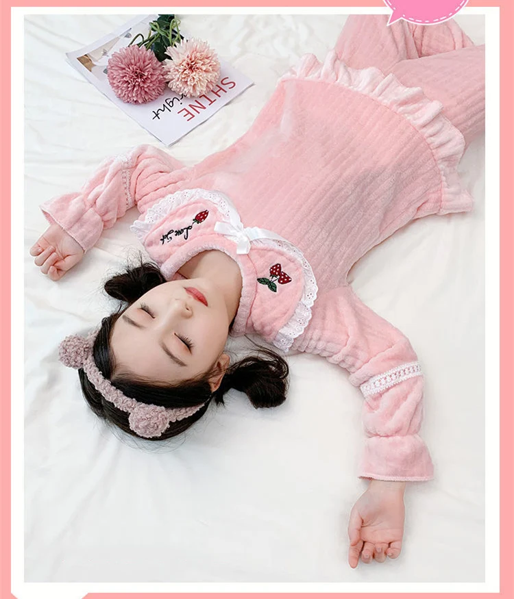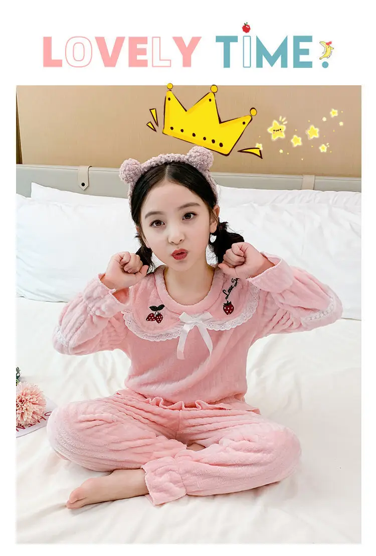 Отзывы о Коралловый флисовый пижамный комплект для девочек однотонный полосатый стиль
