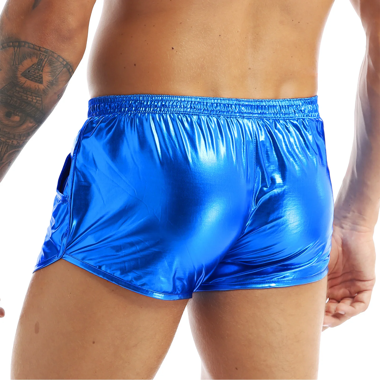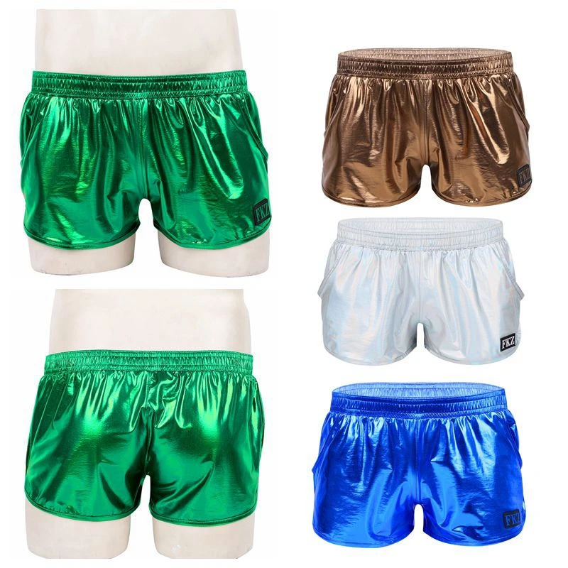 Отзывы о Мужские блестящие шорты-боксеры с металлическим блеском популярные штаны низкой