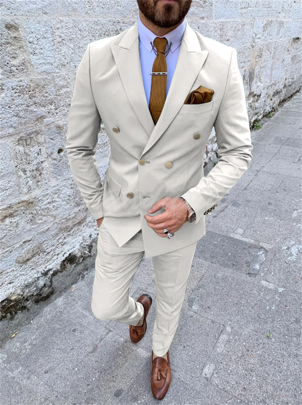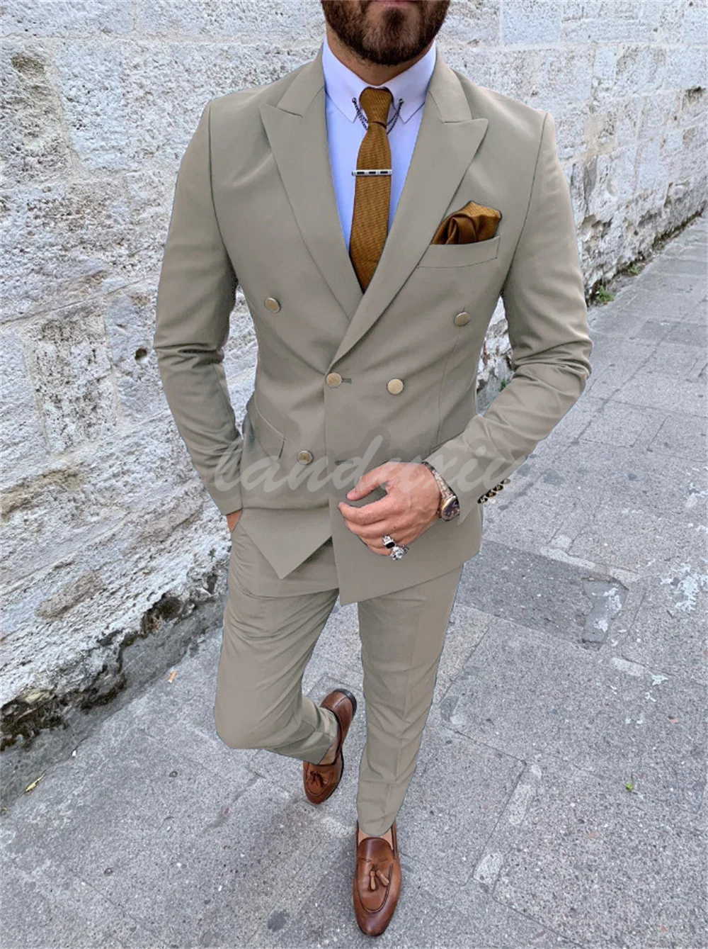 Отзывы о Модный двубортный мужской костюм зеленый из двух предметов приталенный для