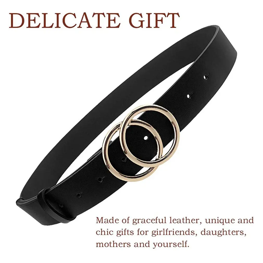 Отзывы о Ремень кожаный женский модный пояс для джинсов с двойной кольцевой пряжкой