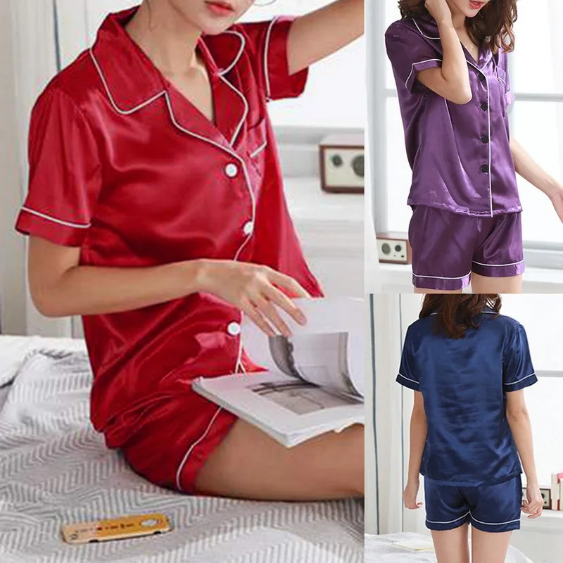 Отзывы о Шелковая пижама Женская однотонная Милая Пижама для женщин Летняя комплект из