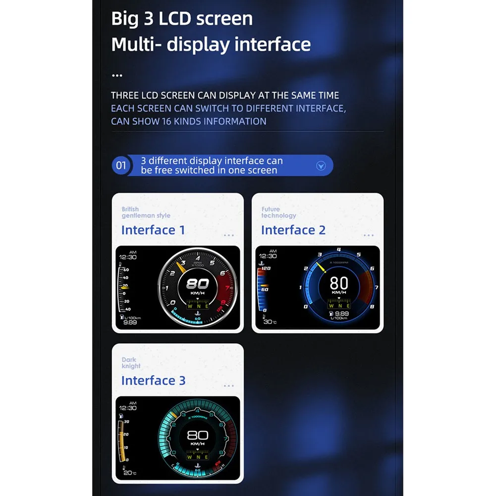 * 2. Большой экран: Этот продукт является многоэкранной совместной работой, которая может отображать несколько различных интерфейсов одновременно, и может отображать 16 видов информации, избегая отображения разной информации о фронтальном и заднем наклоне.