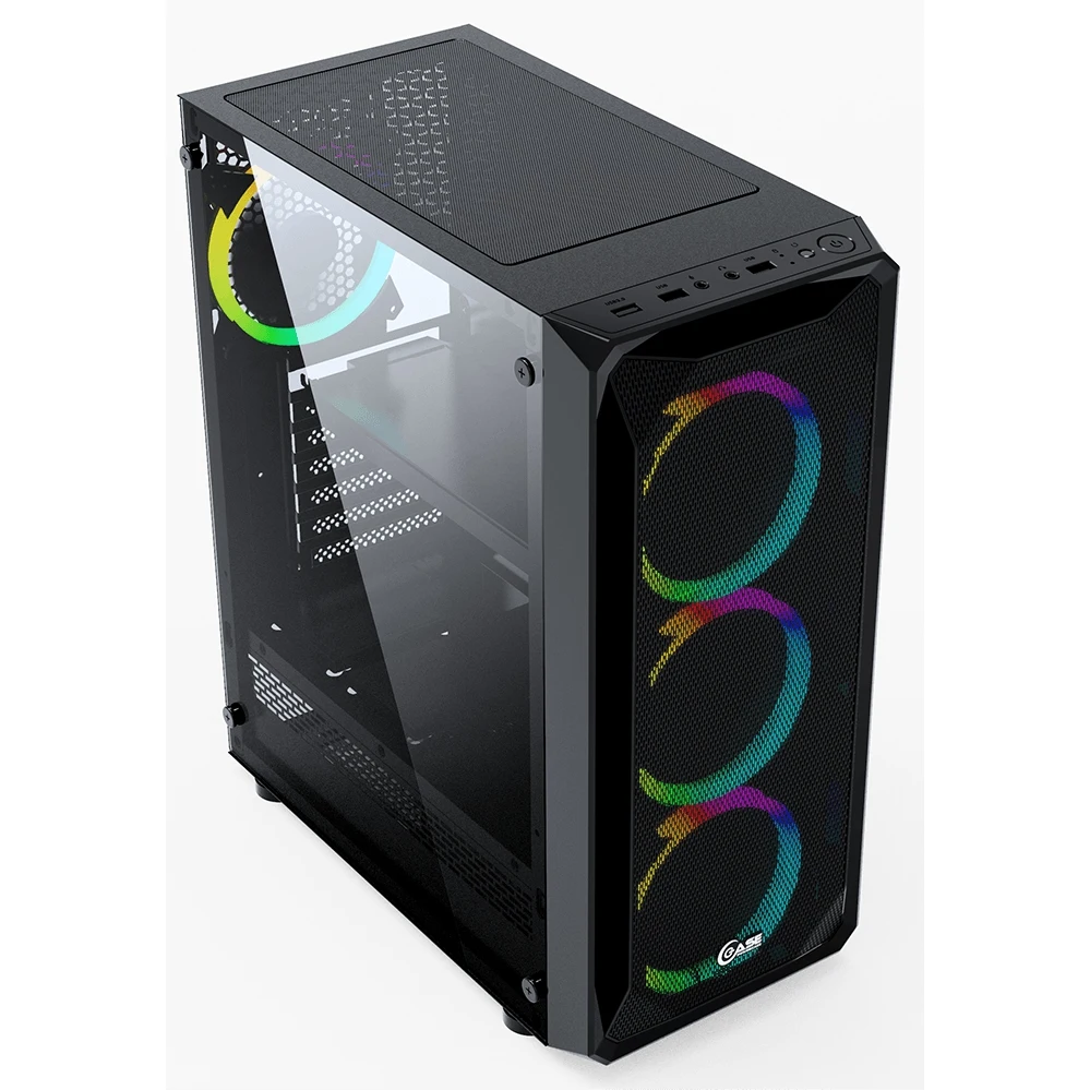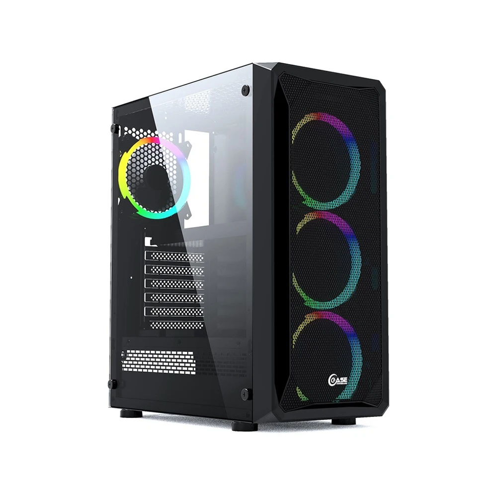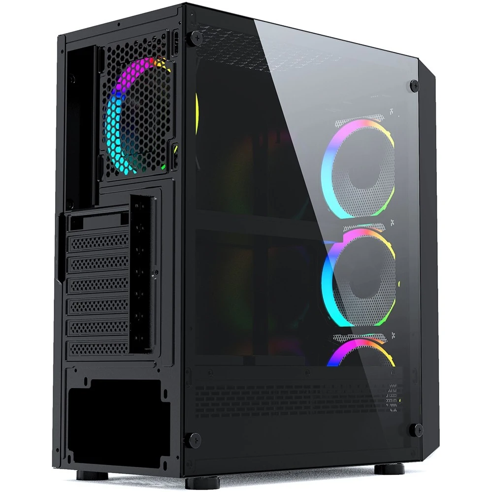 MidiTower. Для плат ATX, microATX, MiniITX. Боковая панель из закаленного стекла. LED подсветка вентиляторов. Нижнее расположение БП (макс. 185 мм). Отсеки: 2х 3.5", 2х 2.5". 7 слотов расширения. USB3.0, 2 x USB2.0, HD Audio. Размеры 190x440х400 мм.