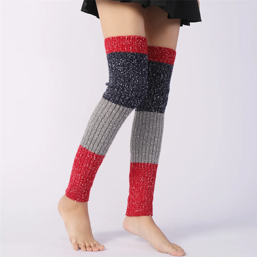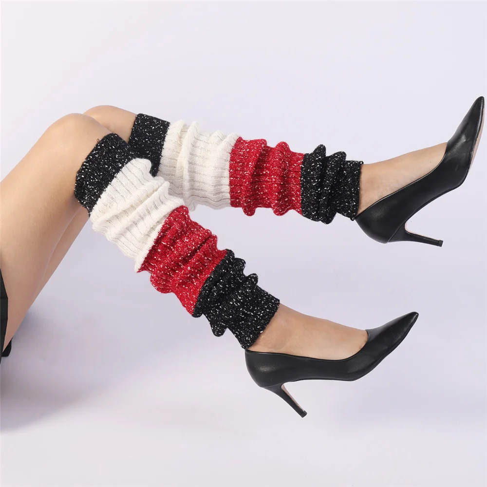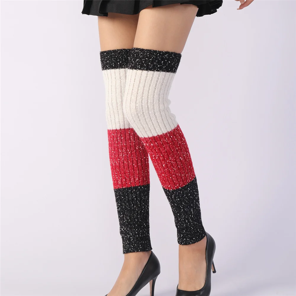 Женские зимние утепленные вязаные гетры; Гетры с манжетами и отделкой; Цветные длинные гетры; ST009