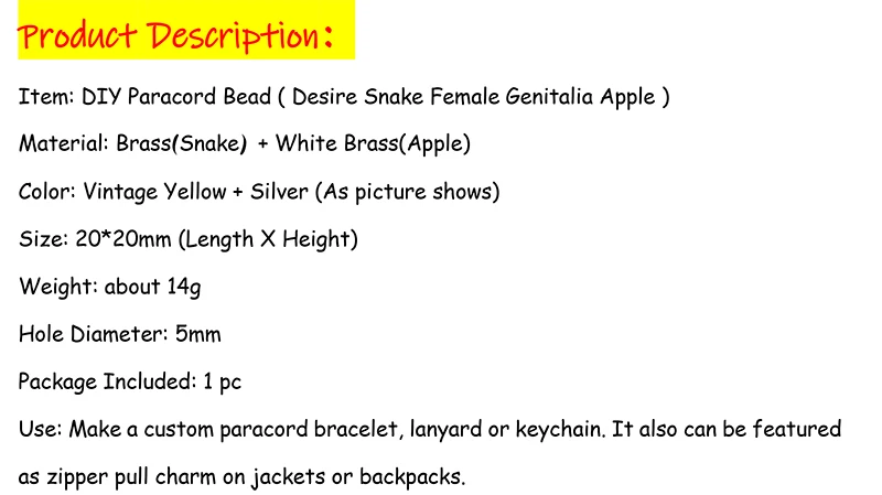 Отзывы о Desire змея женская гениталии яблоко фигурка EDC Открытый Паракорд бусины Ретро