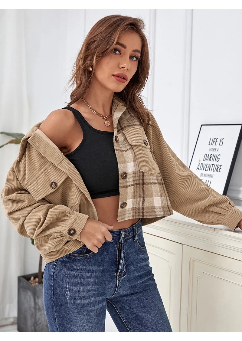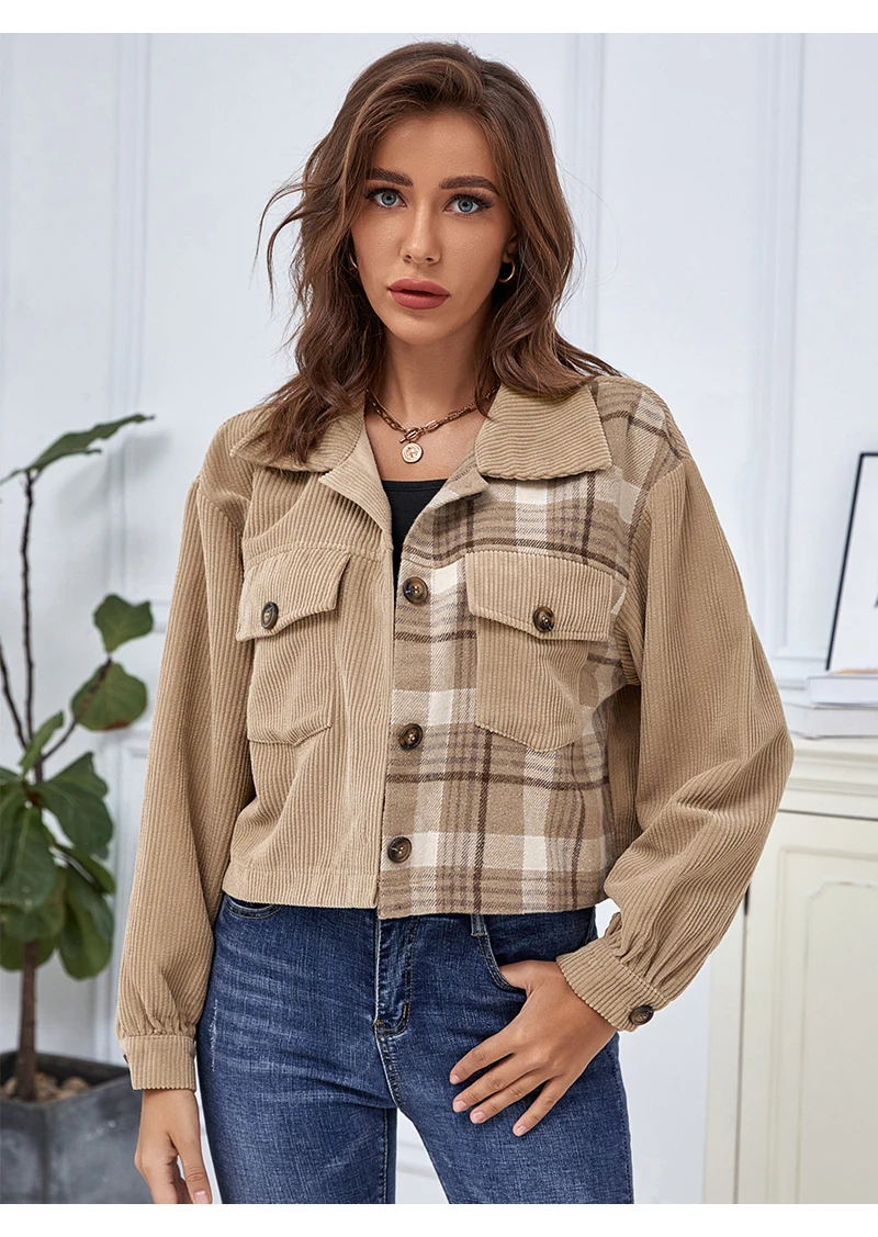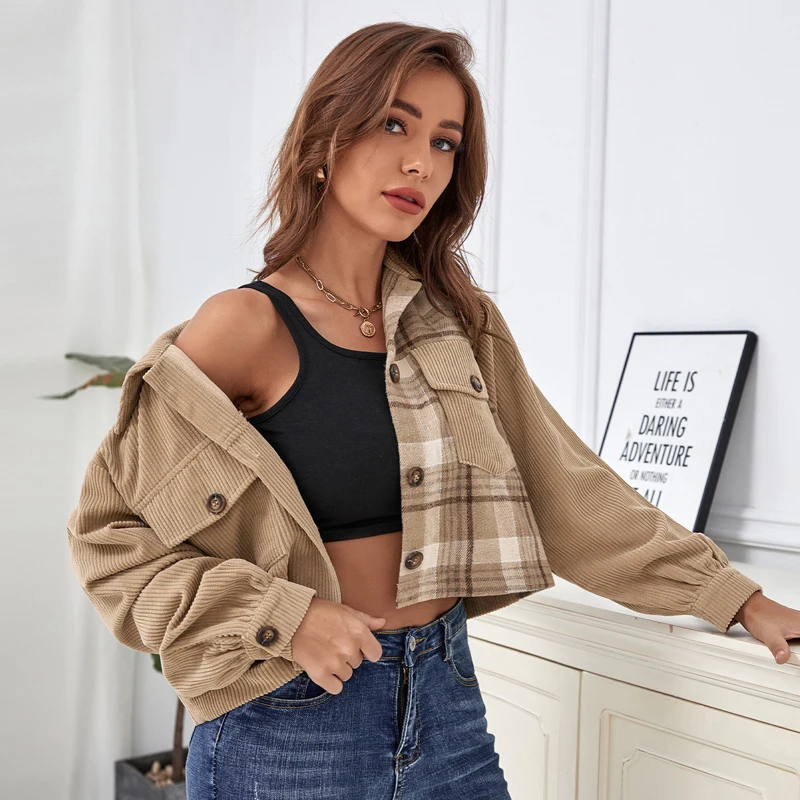 Отзывы о Женское вельветовое пальто Повседневная однобортная короткая куртка цвета хаки