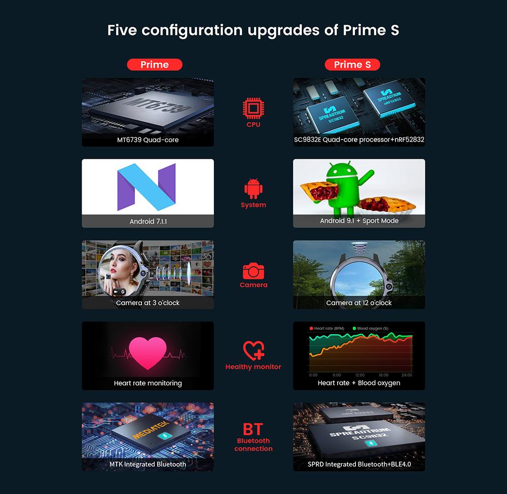 Prime S настроил положение боковой камеры на основе Prime, а боковая камера, расположенная непосредственно спереди, больше подходит для пользователя, чтобы делать фотографии и находить вид, что эквивалентно опыту фотографирования умных часов.