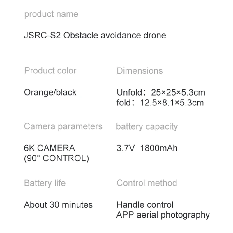 S2 ультразвуковое Предотвращение препятствий БПЛА имеет интеллектуальную функцию избегания препятствий спереди, сзади и слева, чтобы избежать повреждения самолета от удара, и аэрофотосъемка safer.6K высокой четкости WIFI, 8x зум, угол съемки передней камеры может регулироваться пультом дистанционного управления, максимальная Регулировка-90 градусов, Угол съемки более полный. Можно осуществить возврат домой с помощью одного ключа, без сигнала возврата домой, низкое энергопотребление, возврат домой из-под контроля, даже если вы улетите далеко, вы можете безопасно вернуться домой. Модульная дизайном в виде аккумуляторной батареи, 3,7 V 1800mAh аккумулятор с длительным сроком службы на расстоянии до 30 минут, Записывайте прекрасные моменты и не нужно беспокоиться о внезапном отключении питания. Интеллектуальное слежение, возврат одной кнопкой, Безголовый режим, подъем и спуск, вперед и назад, полет влево и вправо, оптическое позиционирование потока и т. д. делает его хорошим помощником для наружной аэрофотосъемки.