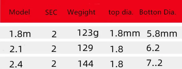 Длина: 1,8 м 2,1 М 2,4 м