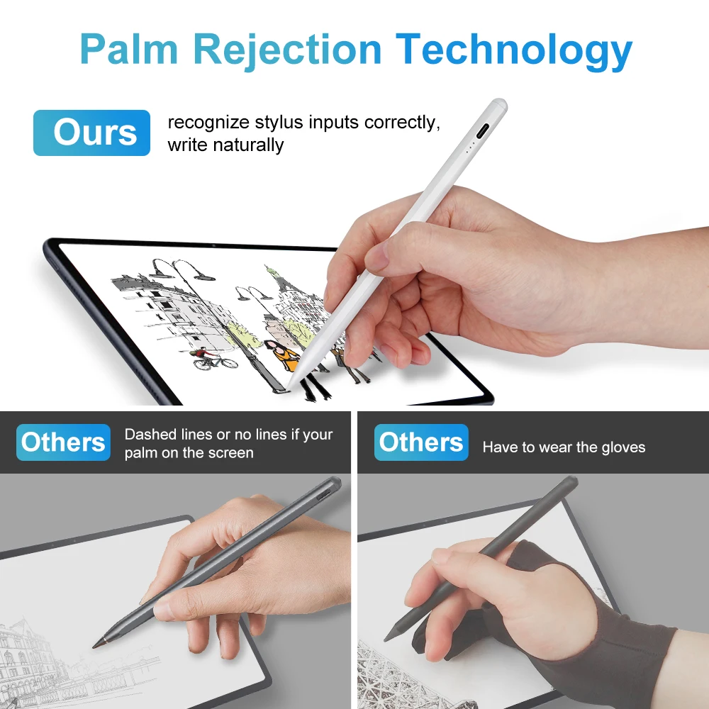 Усовершенствованная ручка для iPad с технологией распознавания ладоней, вы можете хранить ладонь на экране iPad без неудобных перчаток во время письма или рисования. Как настоящие ручки, обеспечивают естественное и гладкое ощущение письма. Мы благодарим вас за то, что вы можете использовать эту ручку на iPad с защитным стеклом для экрана.