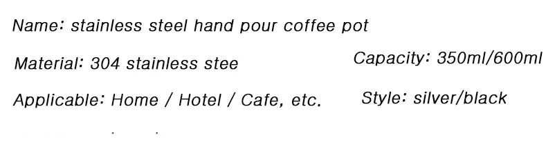 Этот кофейный чайник имеет узкий рот и обтекаемый дизайн, что позволяет ему налить постоянное количество горячей воды и хорошо подходит для выхода из воды. Зеркальная текстура полна чувства качества и роскоши, нержавеющая сталь не только хорошая коррозионная стойкость и долговечность, так как горячая вода падает до соответствующей температуры, подходит для приготовления кофе.
