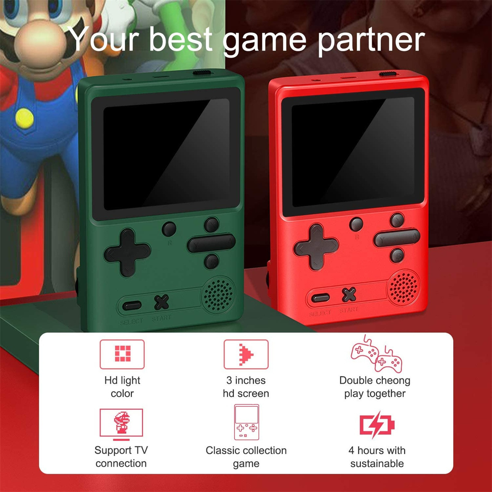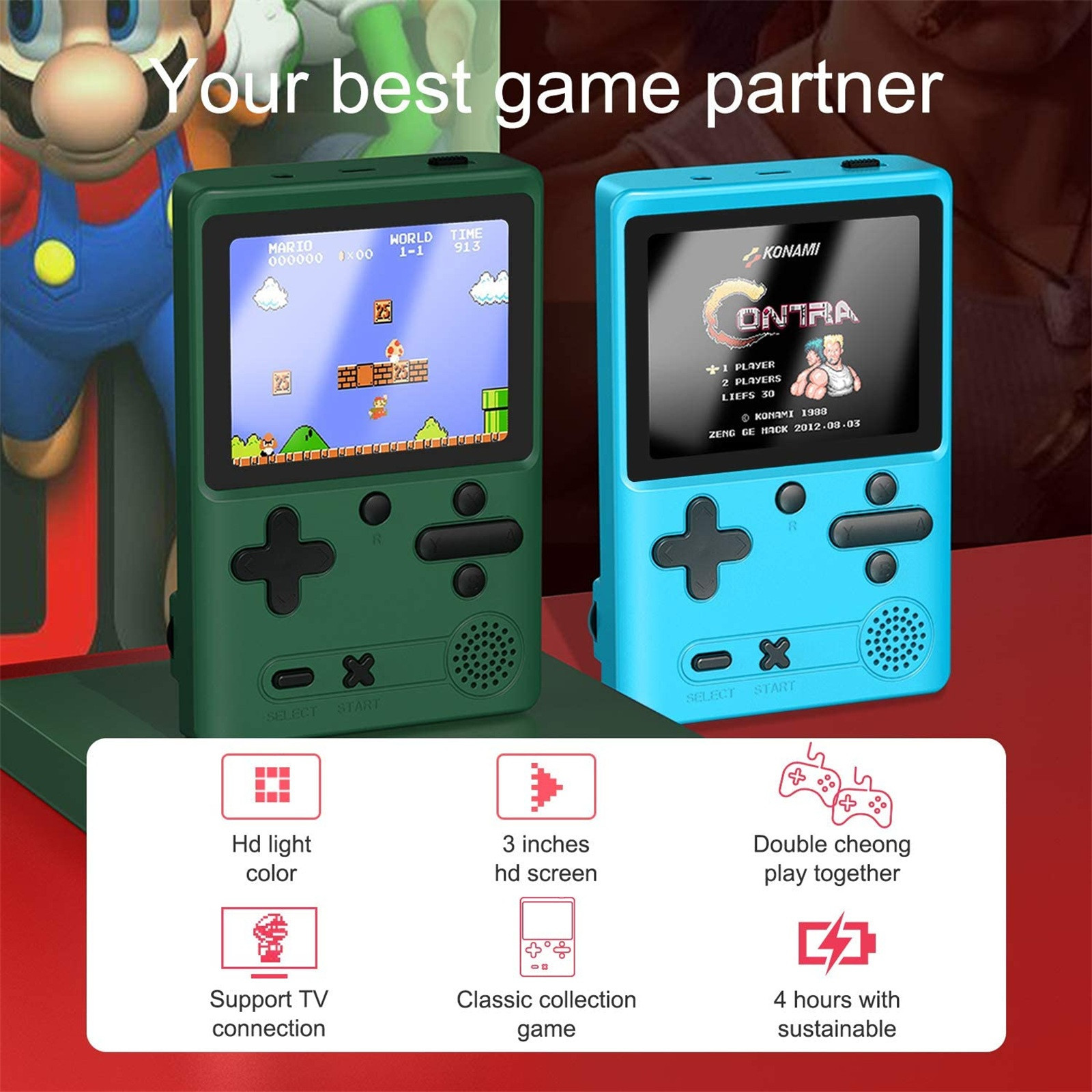 - Игровая консоль имеет Ностальгические уникальные игры 500 FC. В игру можно играть без повторов, Возьмите вас обратно в удовольствие от детства, пробуждая чудесное детство Воспоминания взрослых 80s и 90s и высвобождение их жизненного давления. Это Игра подходит для детей старше 12 лет и взрослых. Зеленый геймпад A Входит в посылка для подключения к маленькой портативной игровой консоли Для игр с двумя играми. 3,0-дюймовый ЖК-дисплей экран может быть подключен к ТВ через AV выход, так что вы можете легко наслаждаться живыми и захватывающими видеоиграми на Большой экран телевизора. Подключается к телевизору играйте счастливо с друзьями и наслаждайтесь Каждый прекрасный момент. Подарите вашей семье больше, идеальный подарок Игры с семьей или дарить им подарки, чтобы увеличить семейное счастье. Поддерживает два игрока и играть по телевизору Эта ретро игровая консоль может подключаться к Ваш телевизор с av-выходным кабелем и поддерживает 2 игрока. Контроллер Работает только в режиме двух проигрывателей. Только игры, которые поддерживают два игрока Режим, вы можете играть с другим человеком. (Как только вы используете консоль Управление, другой использует контроллер для управления, не работает в меню Система)