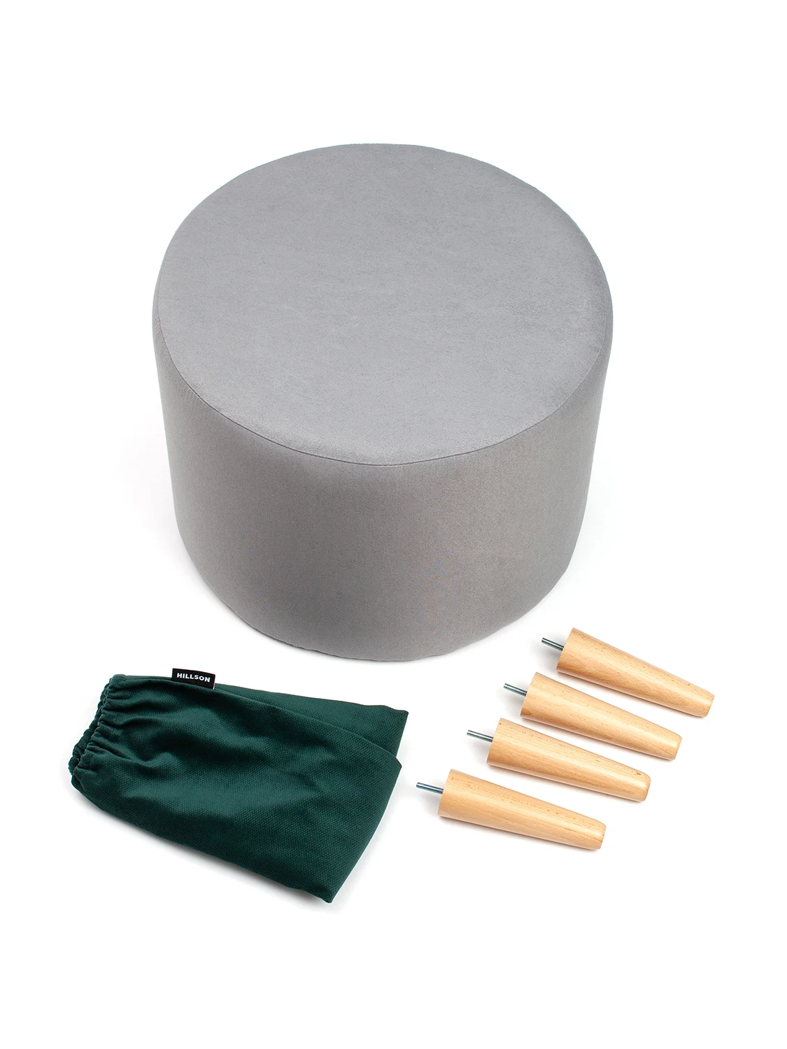 Пуфик со съемным чехлом, высота 45 см, диаметр 42 см, опоры из натурального дерева (бук) покрытые защитным бесцветным лаком (Италия). Каркас из шлифованной березовой фанеры высшего сорта 2/2, натуральное дерево, это значит, что пуф экологичный и надежный, нагрузка до 160 кг.