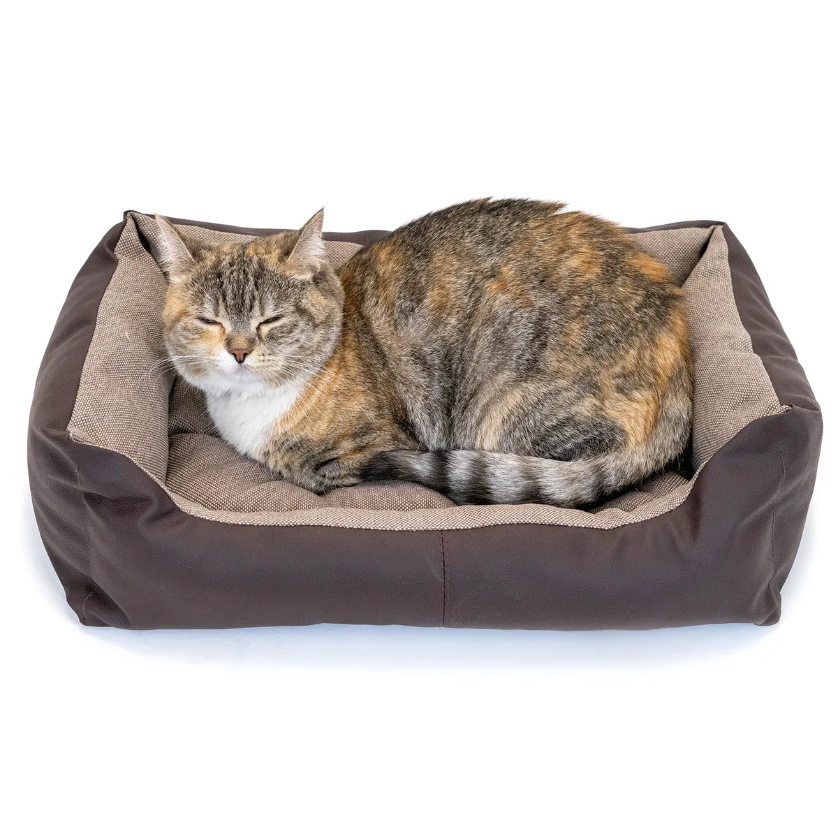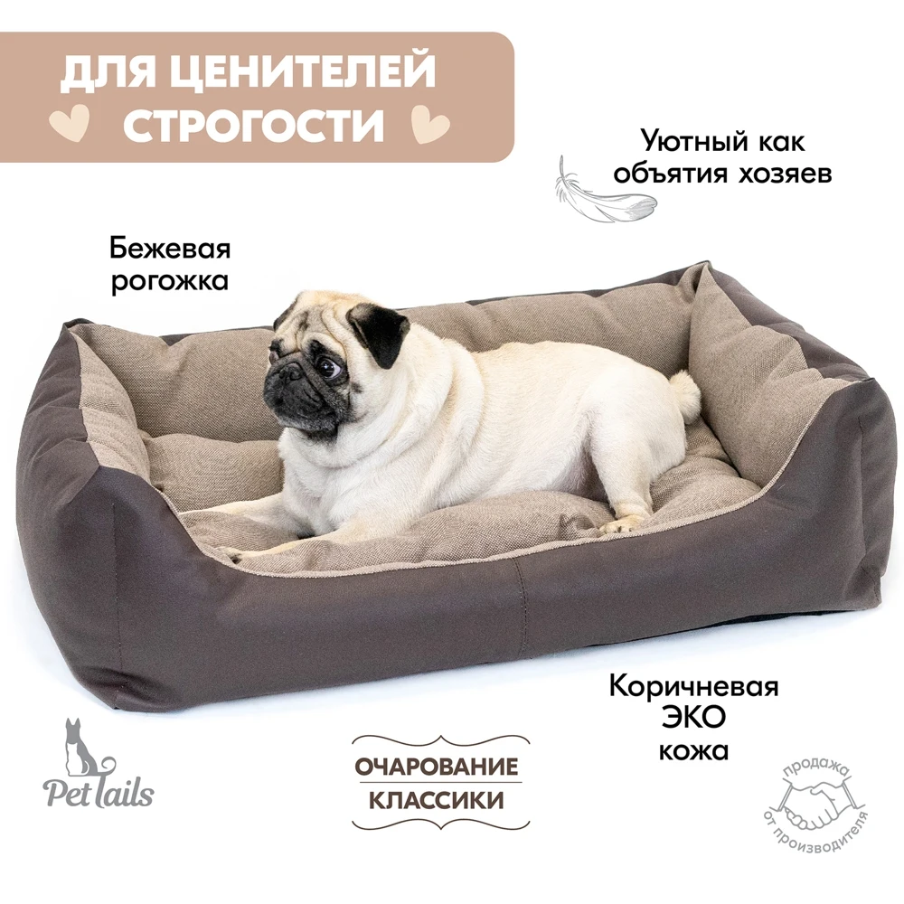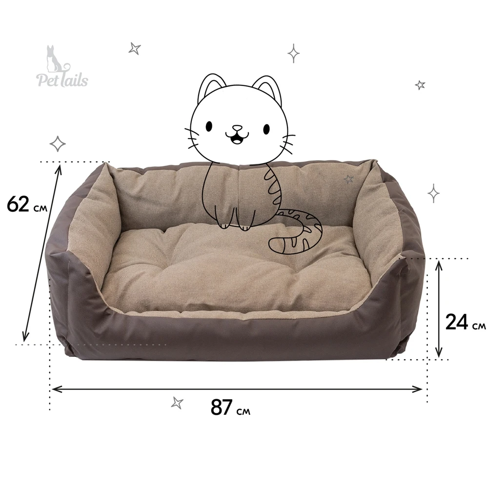 Лежак с подушкой "PetTails" прямоугольный рогожка, экокожа, синтепух, для кошек, для собак