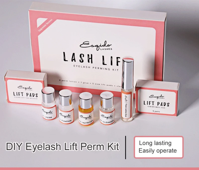 В комплект входят перманентные средства, фиксация, питание, клей для ресниц, чистящее средство и чистящие прокладки.