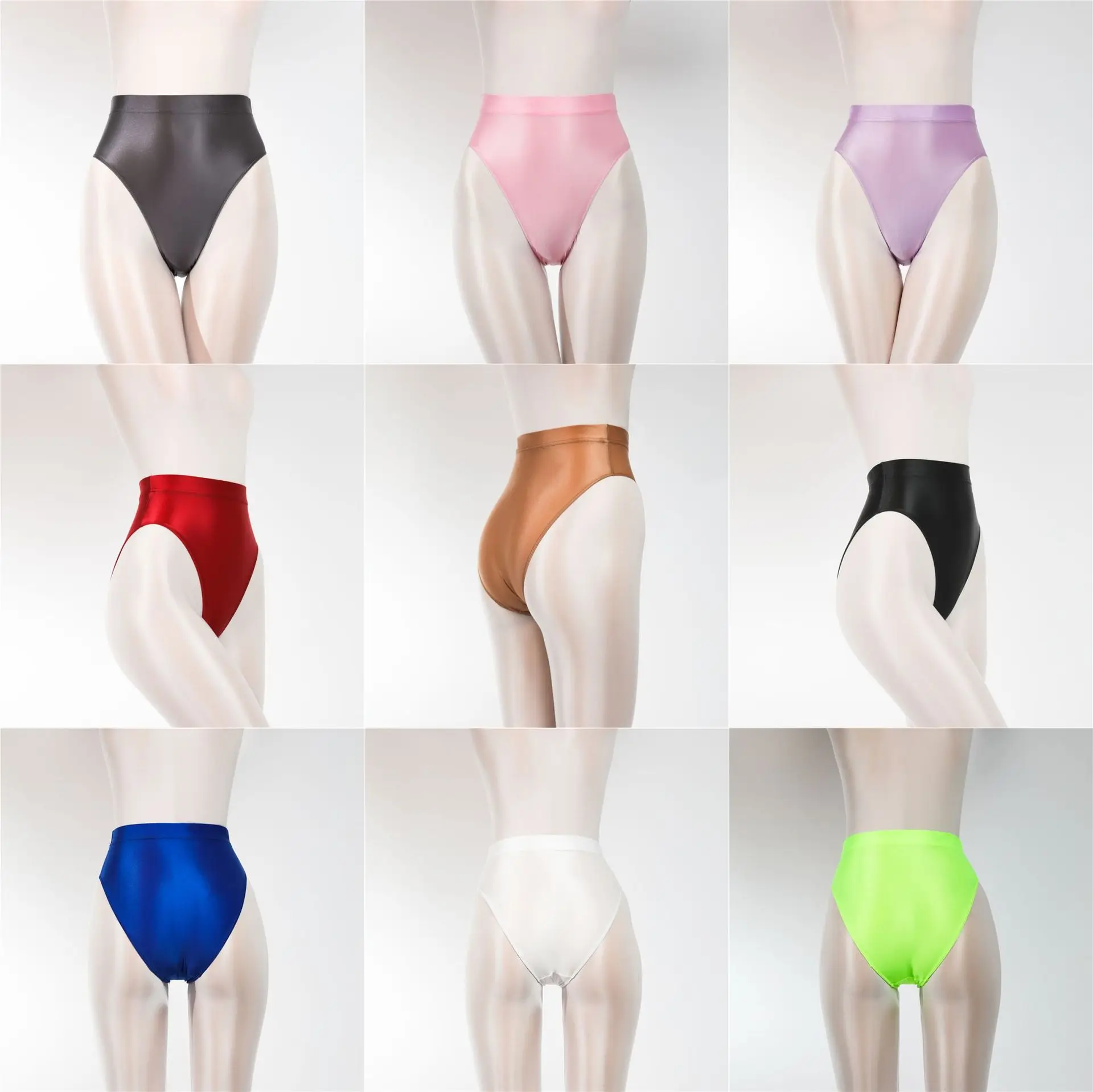 Сексуальное масло, блестящее женское нижнее белье, трусики с высокой талией, контроль живота, тонкое гладкое прозрачное экзотическое нижнее белье