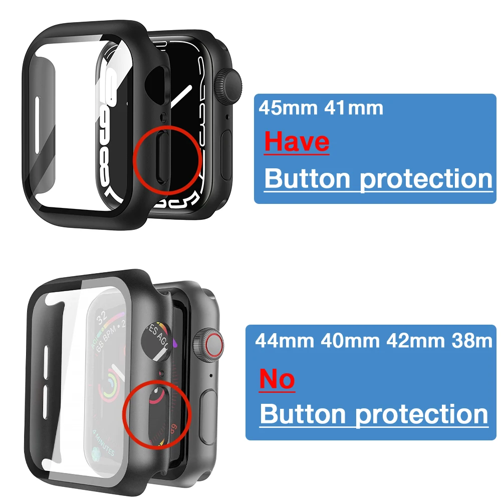Примечание: 45 мм и 41 мм имеют защиту кнопки, 44 мм 42 мм 41 мм 38 мм не имеют защиты кнопки, качество такое же.