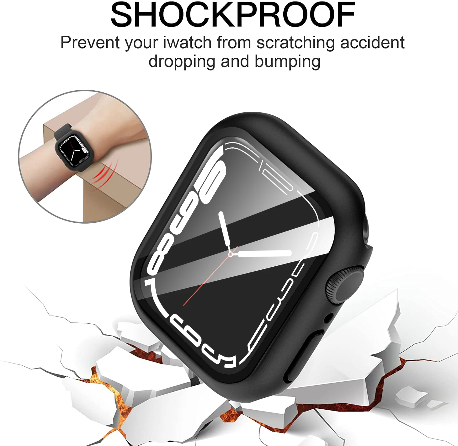 Анти-шок и защита от падения: Изготовлен из поликарбоната и встроенного закаленного стекла, этот чехол покрывает все передние и изогнутые края часов и обеспечивает полную защиту iwatch.