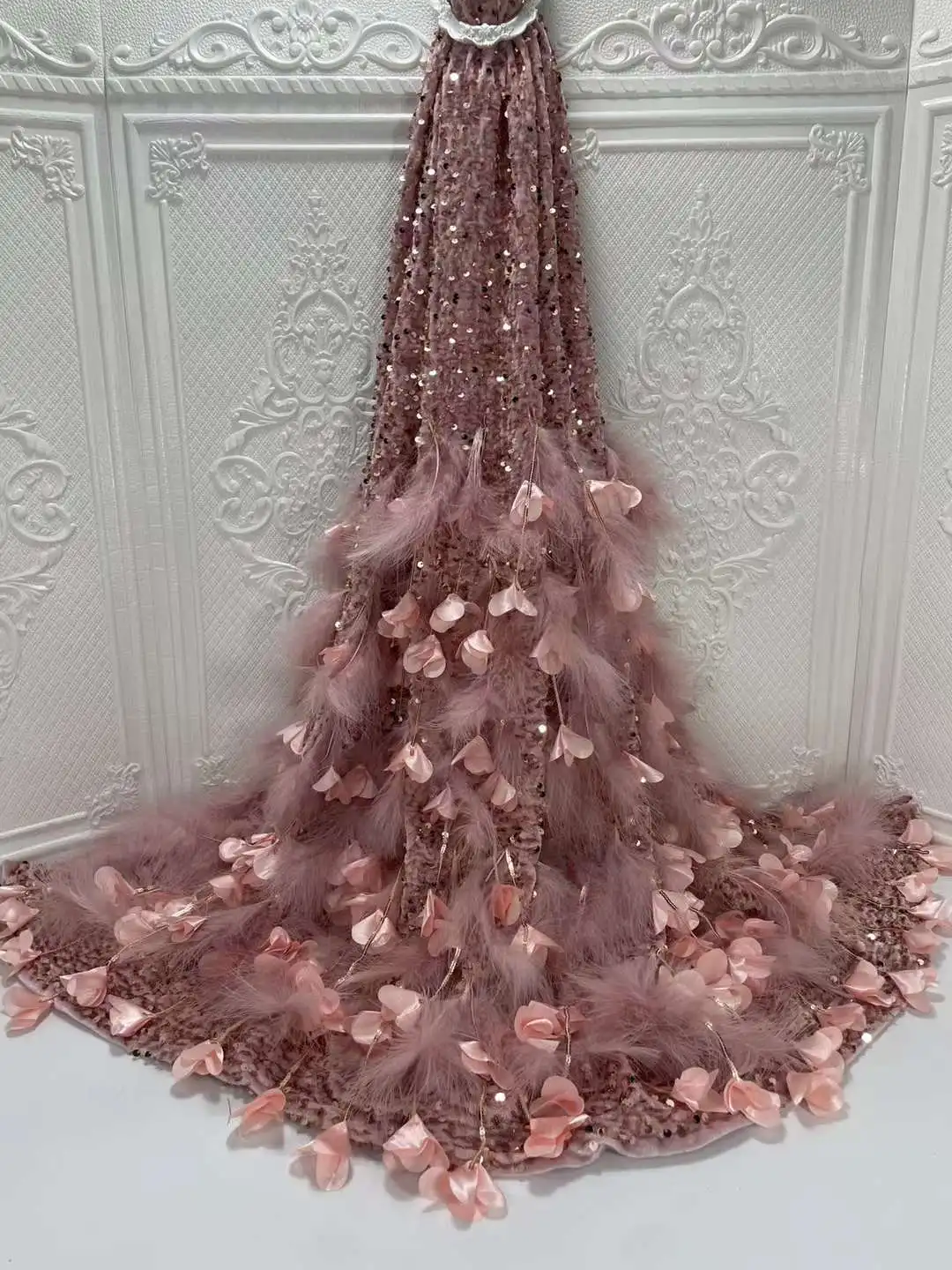 Отзывы о Роскошная кружевная ткань ручной работы с блестками и 3 D переводными картинками
