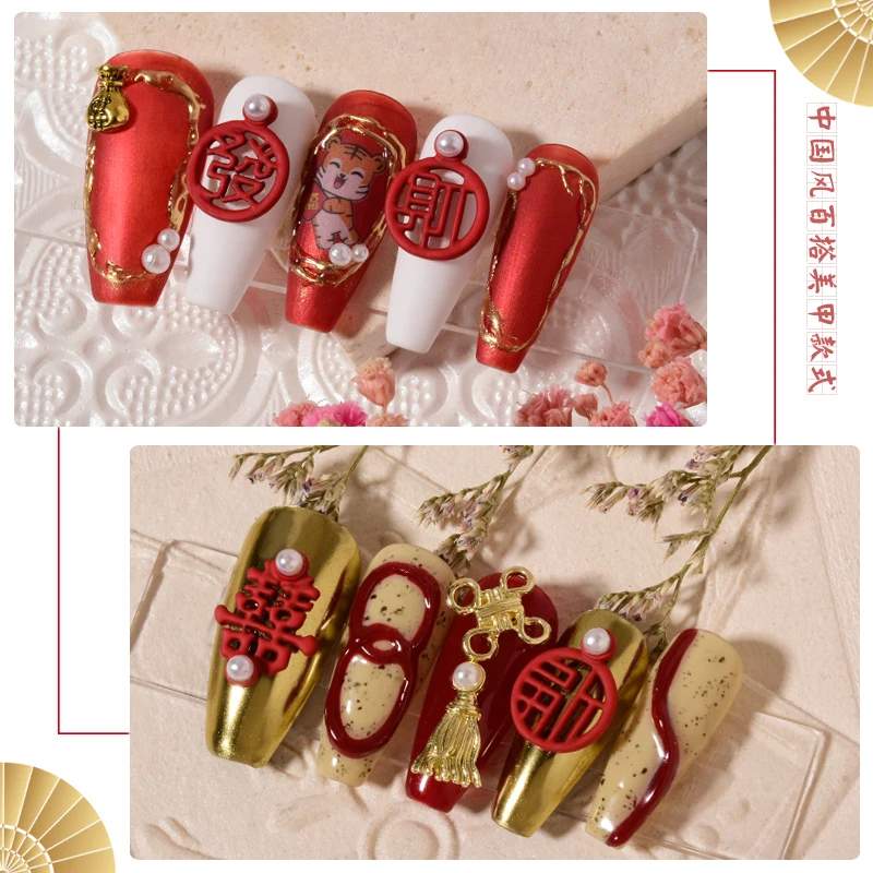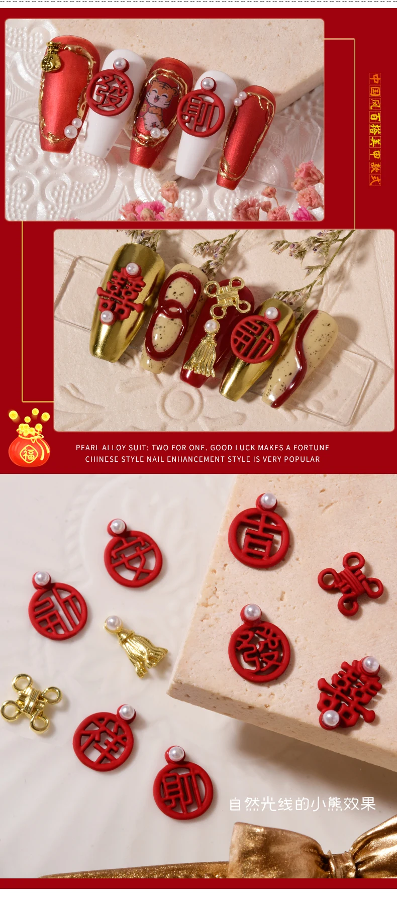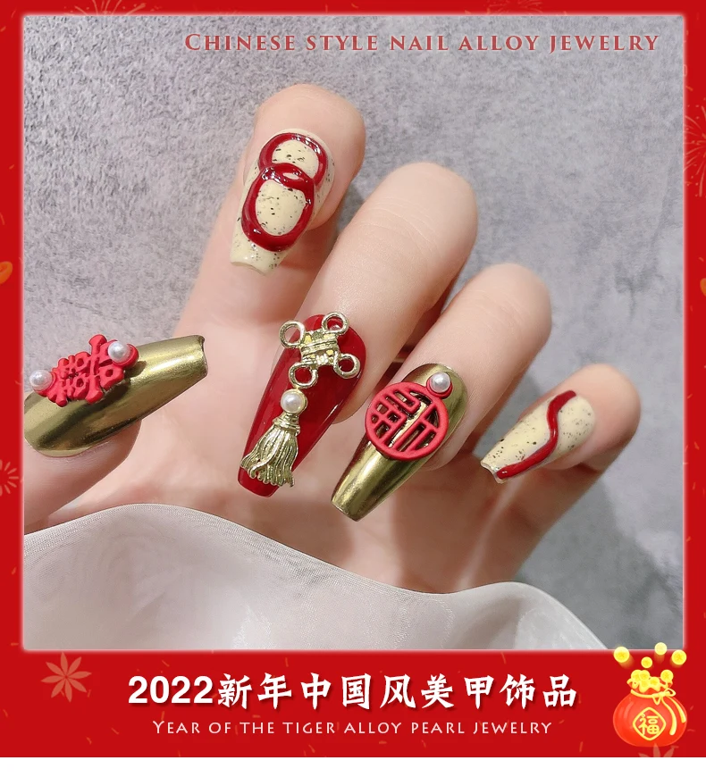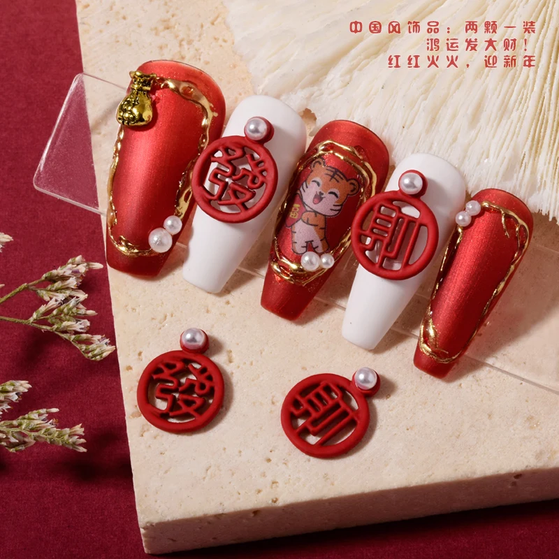 Отзывы о Подвеска для ногтей в китайском стиле красная ажурная надпись на удачу