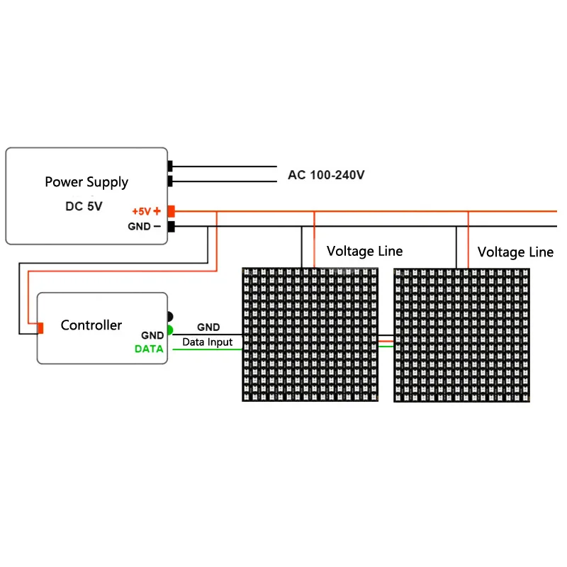 2:WS2812B Светодиодная панель должна использовать источник питания DC5V и должна быть нужна Светодиодная панель управления!