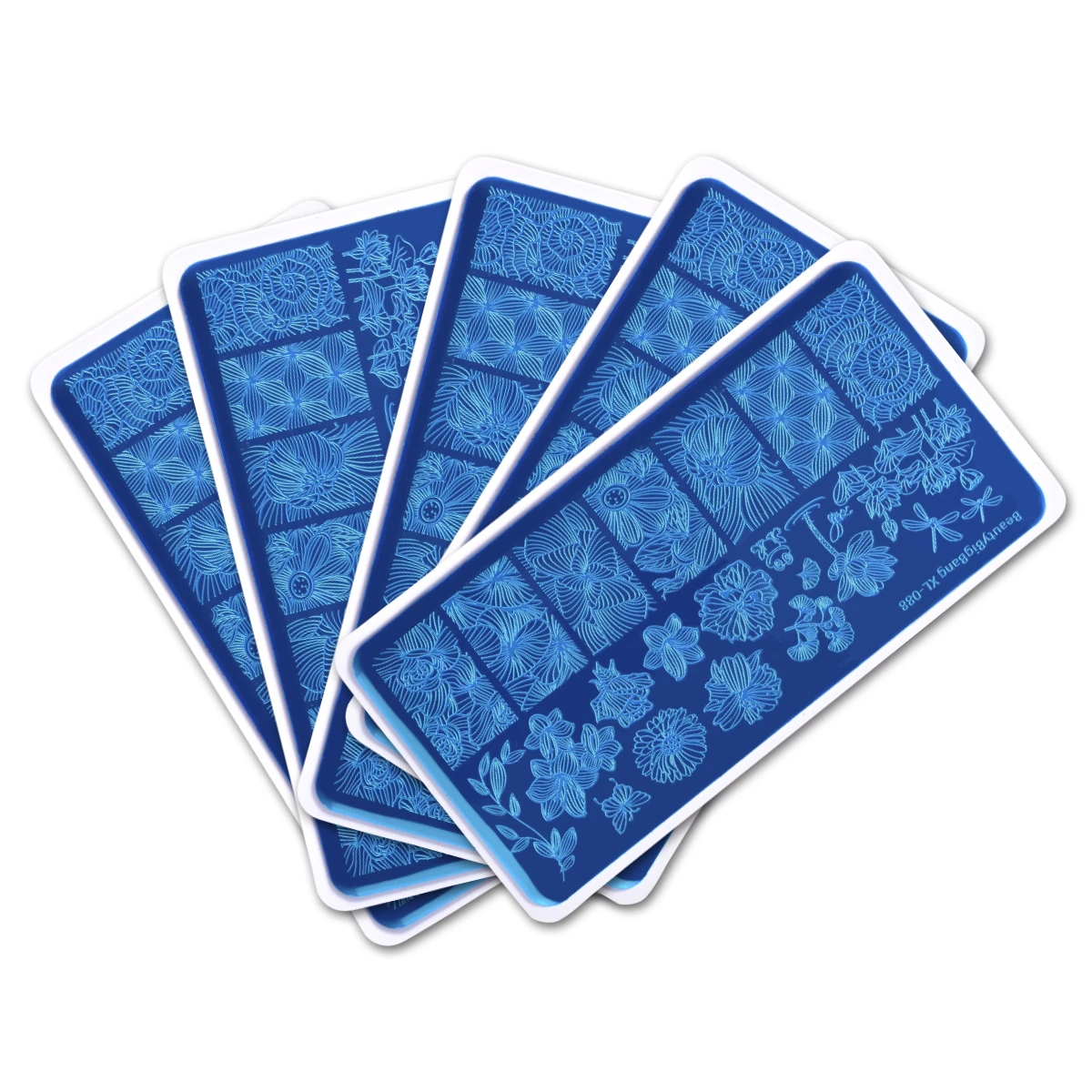 Beautybigbang ногтей цветок штамповки пластины Стрекоза Лягушка и Лотос печать изображения ногтей шикарный шаблон штамповки пластины плесень XL-088