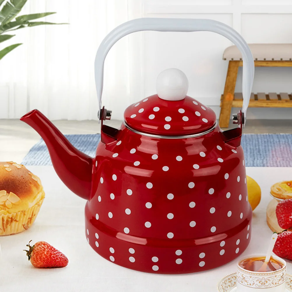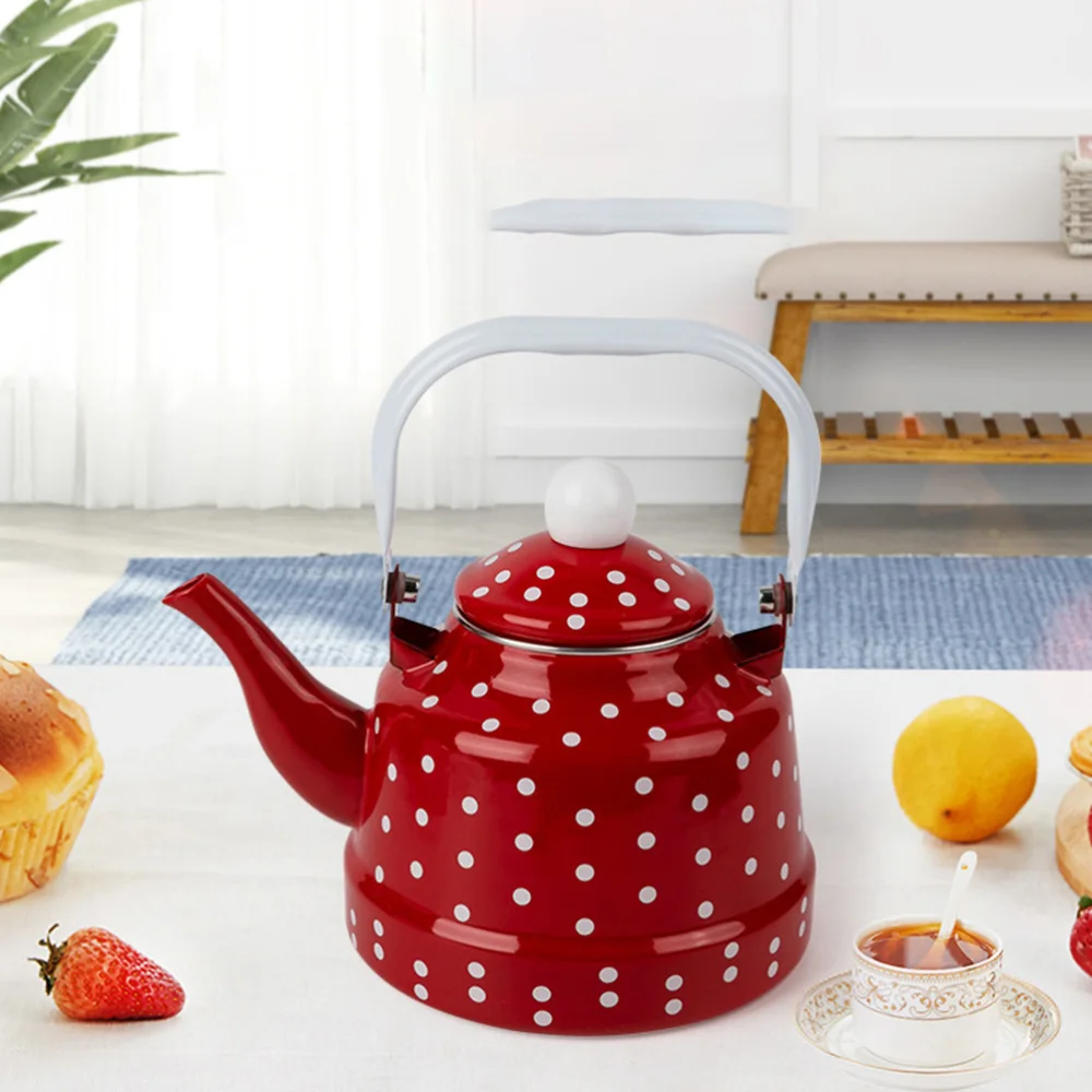 Отзывы о Эмалированный чайник в красный горошек прочный для воды с подогревом красивый