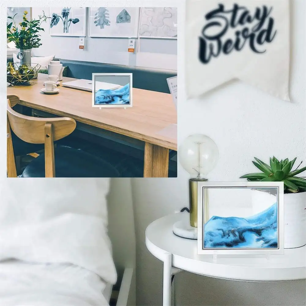 3D Красочные движущиеся песочные рамки струящийся песок художественное Изображение Стекло песочный пейзаж в движении дисплей струящийся песок живопись подарок домашний декор
