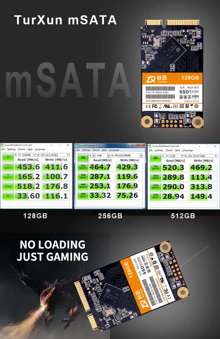 TurXun mSATA SSD SATA3 iii 32 Гб 64 ГБ 120 ГБ 128 ГБ 256 ГБ 512 Гб HD твердотельный диск для ноутбука Настольный Pos машина