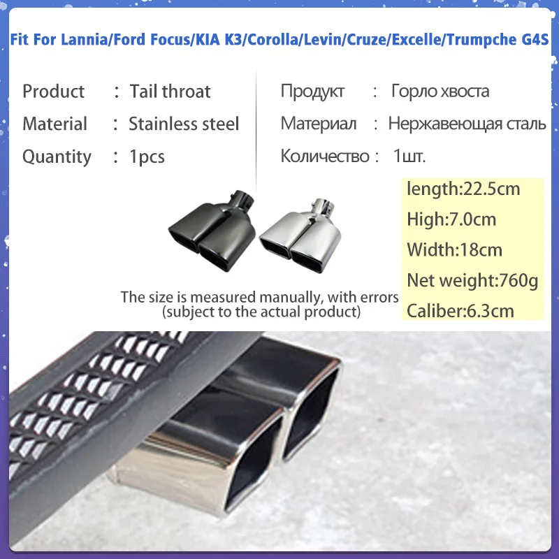 Отзывы о 1pcs Exhaust Muffler Tip 63mm For Lannia Ford Focus KIA K3 Corolla Levin Cruze Excelle Trumpche G4S Retroftting The Tailpipe - купить по