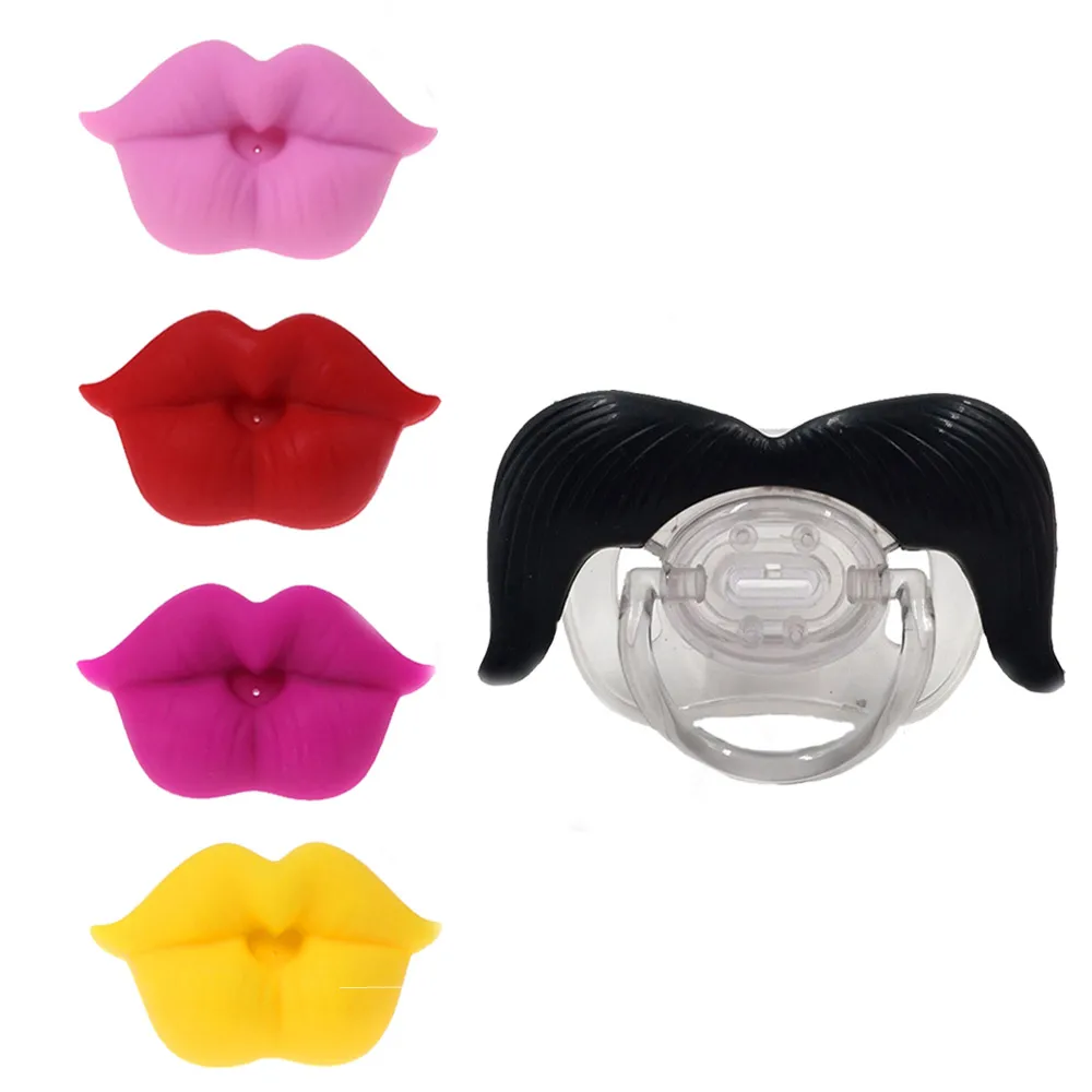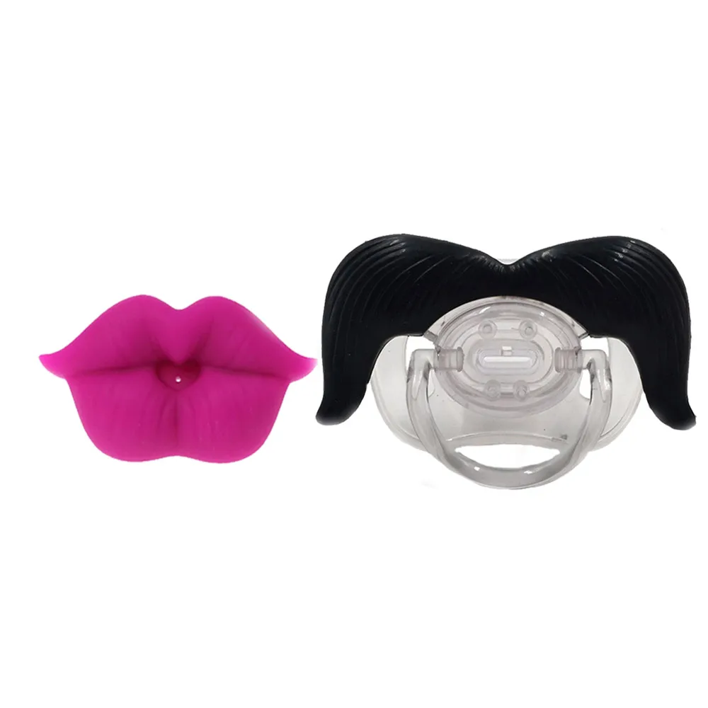 2pcs/Set Silicone Funny Baby Beard Pacifiers Dummy Nipple Teethers Toddler Orthodontic Soother Kiss Lip Mouth Shape Teat Soother