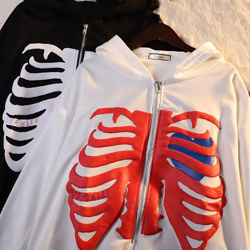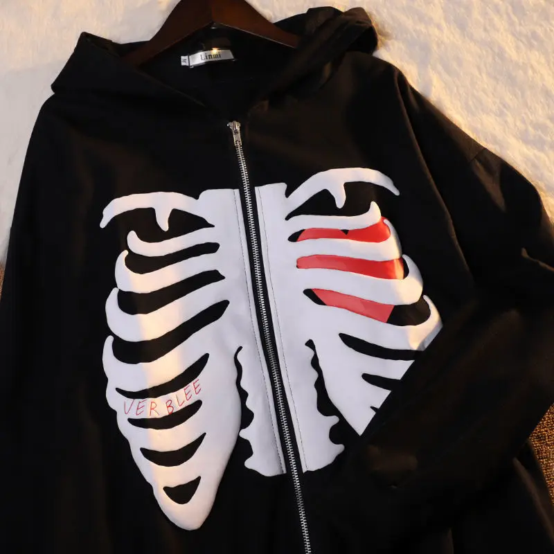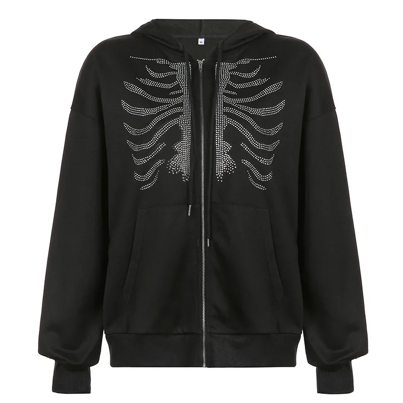 Отзывы о Y2K Харадзюку худи скелет женская готическая Черная толстовка на молнии оверсайз
