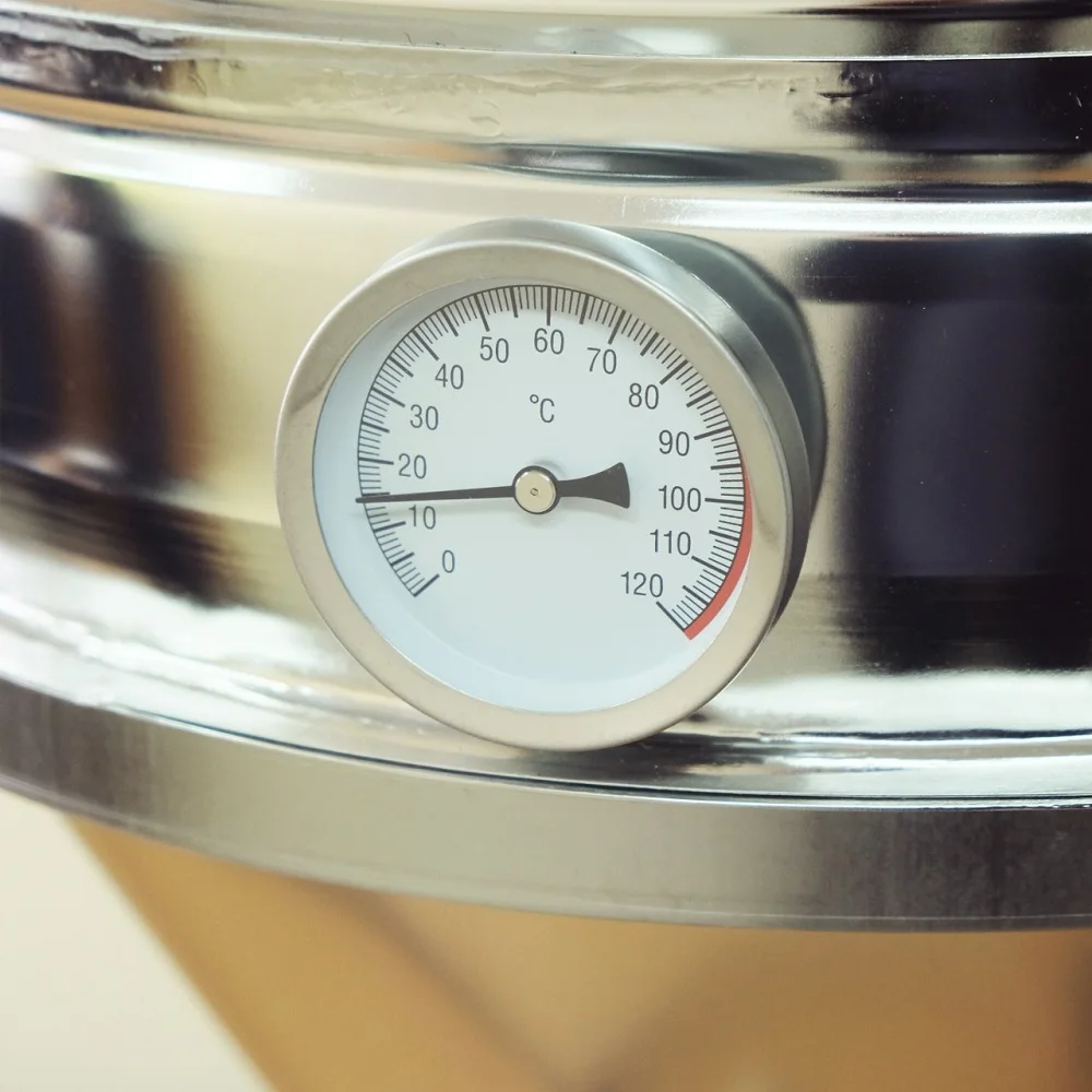 Цилиндроконический танк (ЦКТ или дображиватель) оснащен двумя герметичными кранами, расположенными в основании и на ребре конуса. Через нижний кран Вы сможете сливать осадок и регулировать содержание дрожжей в ферментере, через второй кран – разливать готовое пиво прямо в бутылки, выполнен из нержавеющей стали, из-за чего его можно чистить паром и без моющих средств, а благодаря высокой теплопроводности металла, молодое пиво можно быстро охладить, если того требует технология производства.Для удобства, пивоварный танк оснащен гидрозатвором, термометром. Эти мелочи помогут более точно следовать рецепту и соблюсти все рецептурные особенности.