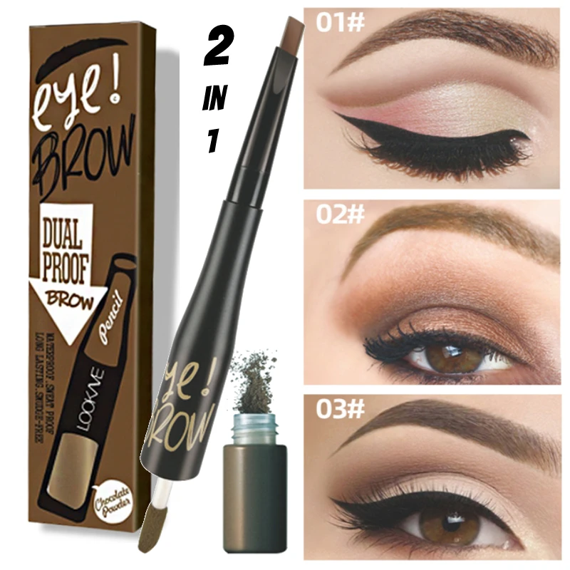 Продукт имеет двуголовый дизайн, один для карандаша для бровей, а другой для порошка для бровей, который удобен и прост в использовании.
