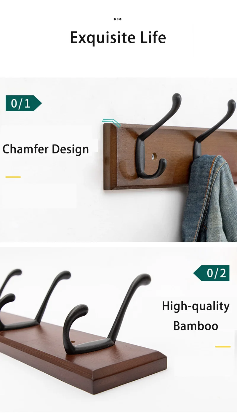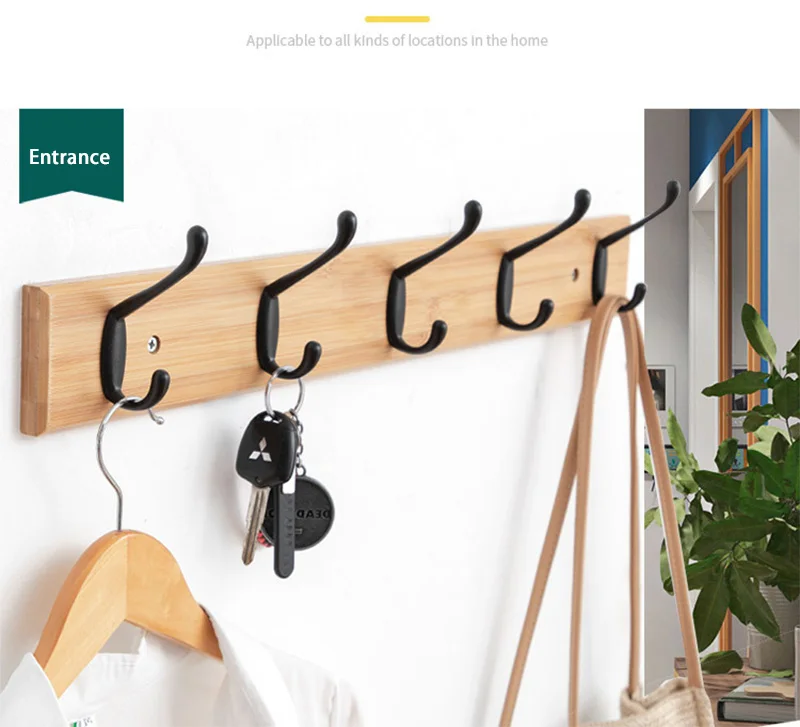 Отзывы о Бамбуковая вешалка для пальто двойные настенные крючки шляпы одежды аксессуары